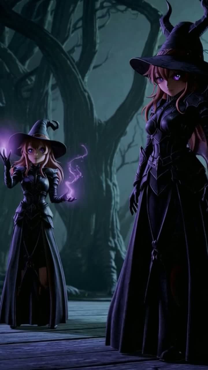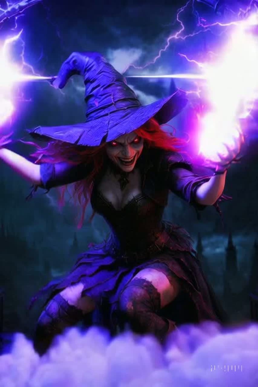 A forbidden witch-ritual unfolding as avant-garde sound alchemy in B Phrygian, thunderous ritual drums echo inside cavernous stone halls while dissonant choirs moan like trapped spirits; bowed metals shriek beneath low bone percussion and trembling sub-earth drones; a wicked female voice chants and cackles through storm-reverb, weaving syllables like incantations over shifting, arrhythmic pulses; gusts of wind and cauldron steam hiss in rhythm as voices overlap in madness, sometimes whispered, sometimes screamed, dissolving into a swirling trance of rain, breath, and fevered evil laughter; every sound feels alive and ancient, as if the forest itself were singing a spell to fracture the listener’s sense of time and body, vocals are wicket, snarling and dry, mischievous