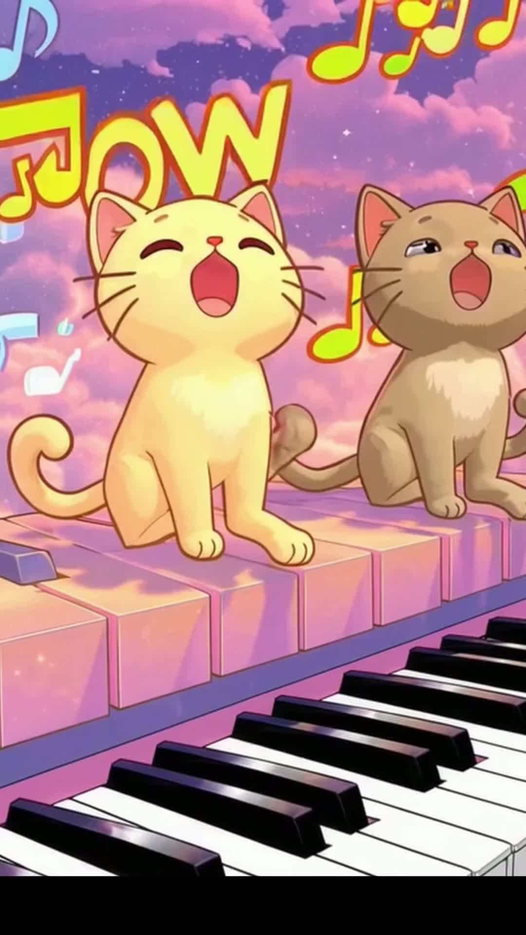 Atmospheric trance textures lay the foundation, featuring lush synth pads and pulsing bass, Cat meows, purrs, and soft vocal layers float above, processed as melodic hooks, Cinematic strings swell in the chorus, while emo-techno beats drive dynamic intensity, The arrangement flows between peaceful verses and soaring, emotionally charged drops, blending harmony and animal-inspired rhythms throughout