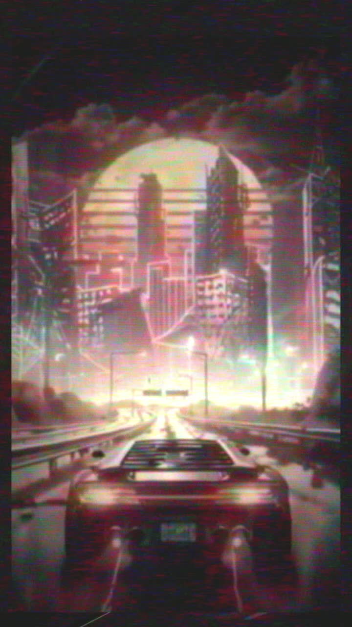 A genre-bending wall of sound that crashes between synthpop, arena rock, and psytrance — hypnotic kick-and-bass grooves colliding with blistering synthwave arpeggios and soaring guitar riffs, Vocals are raw and powerful, sometimes chanted like a ritual, sometimes screamed into the void, then dissolving into vocoder-drenched harmonies, The rhythm pulses like a living machine, four-on-the-floor driving endlessly forward, while spiraling synths create kaleidoscopic tunnels of sound that feel infinite, Layers of distortion, cinematic pads, and warped reverb give the mix a ruined-future quality — as if the 80s survived the apocalypse and learned to dance in the wreckage, It should feel dangerous, euphoric, and unstoppable: a soundtrack for driving forever into a dying sun