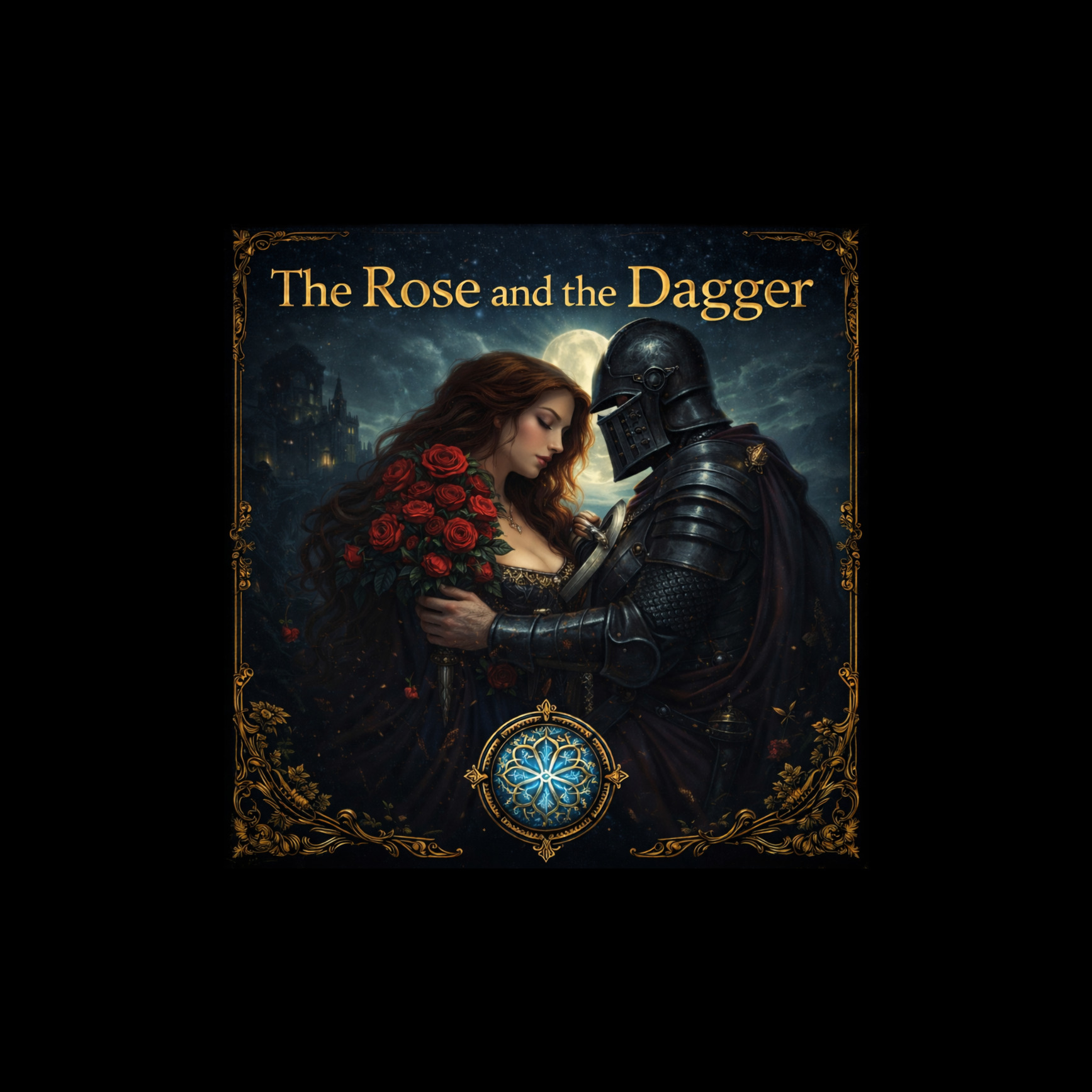 Epic dark fantasy medieval duet anthem with romantic and tragic atmosphere, Male and female lead vocals, both clear, emotional and powerful, alternating in the verses and singing together in a grand hymn chorus, Tempo medium-fast (118–126 BPM), Style: cinematic medieval ballad fused with epic folk anthem, Instruments: deep war drums, orchestral strings, harp, lute, subtle bagpipes, bells, horns, layered choir harmonies, Mood: passionate, dramatic, mysterious, heroic and emotional, The verses should feel intimate and filled with tension, telling the story of forbidden love, betrayal and the fall of a kingdom, The chorus must be huge, hymn-like and highly memorable, with both voices singing together over strong drums and choir responses, Atmosphere: candlelit royal court, roses, silver daggers, burning banners, shattered throne, tragic romance and destiny, Build toward an emotionally explosive final chorus with bigger choir and orchestral lift