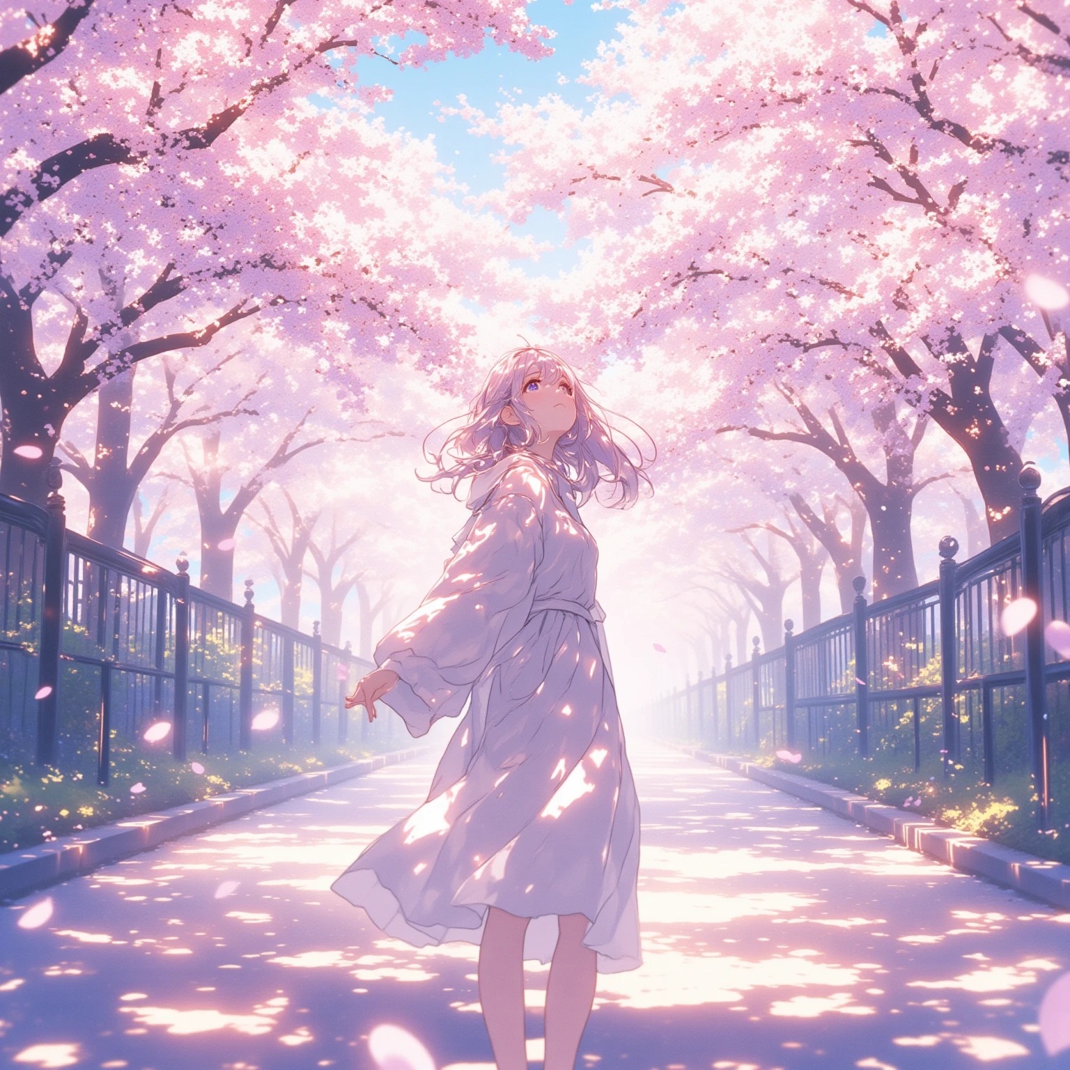 melancholic Japanese rock enka ballad, female vocal, strong emotional enka kobushi singing style, dramatic vibrato, nostalgic spring atmosphere, sorrowful heartbreak theme, piano intro, electric guitar rock ballad arrangement, powerful emotional chorus, Japanese enka influenced J-rock, expressive female voice, cinematic arrangement