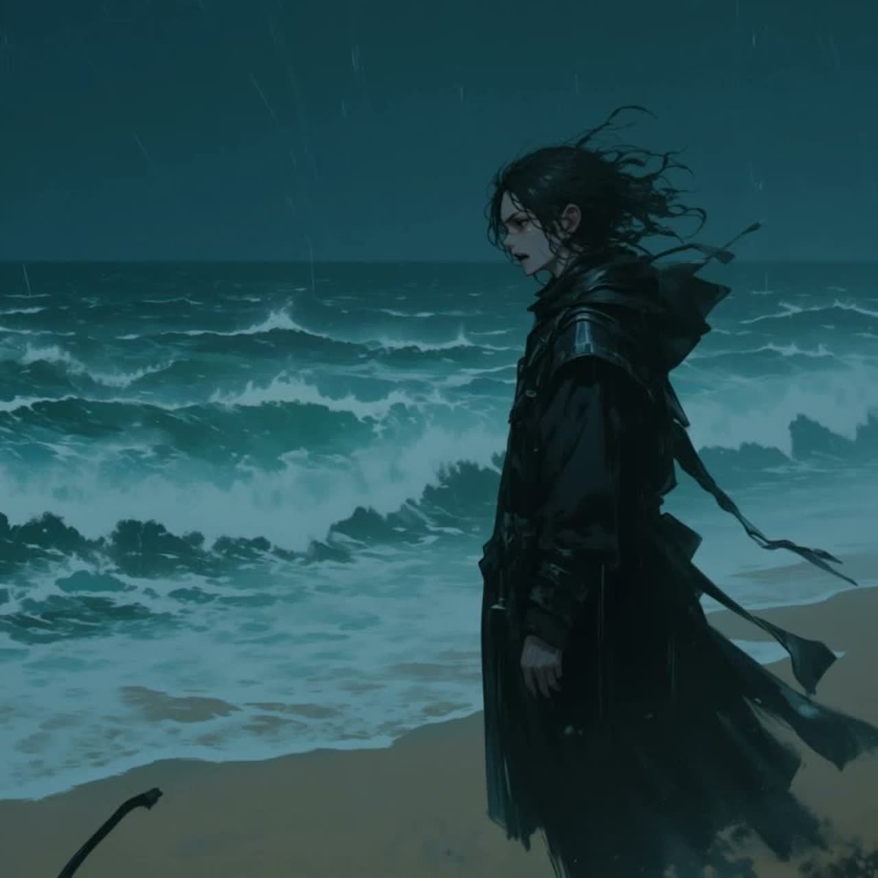 dark enka gothic metal, emotional female solo vocal, deep expressive mature voice, dramatic storytelling singing style, melancholic Japanese atmosphere, distorted guitars, orchestral strings, pipe organ, slow heavy drums, taiko percussion, dark ocean storm atmosphere, tragic and emotional mood, cinematic sound, quiet verses building into powerful chorus, no choir, intimate yet epic