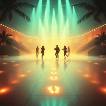 Anthemic & Energetic, Tropical House & Dance Pop, layered synthesizers, driving deep house bass, group backing vocals, gang vocals in chorus, rhythmic handclaps, bright whistle hook, 128 BPM