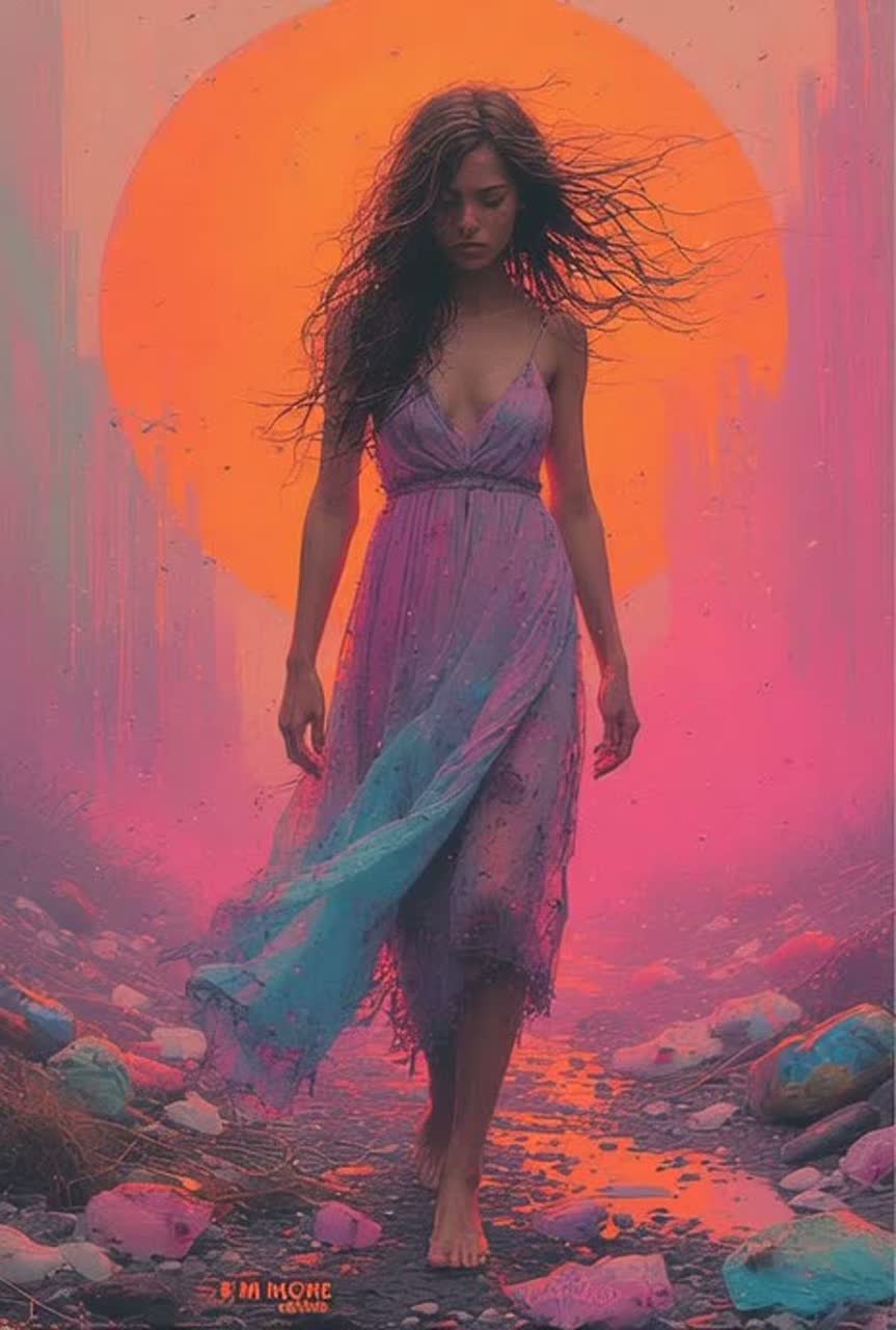 Alternative, Heavy Djent SubGenre: dark fantasy / Electronic technical dark jazz / ambient / illbient fusion, Blends pulsing distorted electronic beats, lush ambient layers, and improvisational jazz for a cinematic, introspective vibe with intricate, glitchy undertones and melodic arpeggios, Music: Mid-tempo, uneven pulses, dynamic shifts from chaotic highs to quiet lulls, Starts with jagged synths, builds with layers, ends in eerie silence, Solos mix frenetic jazz with electronic swells, Instruments: