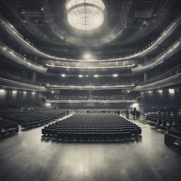 A cinematic orchestral x ambient theatre lament begins with isolated operatic soprano, drenched in reverb, surrounded by discreet ambient noises—breaths, audience rustle, subtle mic static, Sparse strings and piano enter, growing dissonant and unraveling, colliding with the ghostly, off-tune choir, Soprano voice wavers from soaring lines to delicate spoken confessions, as silences and jagged feedback punctuate the tension, Stage sounds—clicks, flickers—intrude, heightening unease, It ends with the music dissolving mid-word into a frail hum, leaving a haunted emptiness