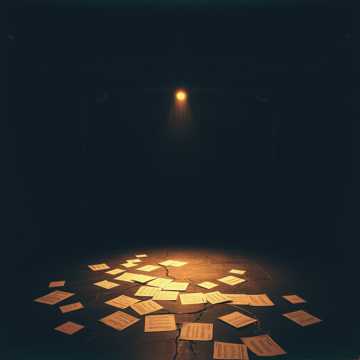 The track opens with echoing page turns and a lingering piano chord resonating in vast space, Intimate, whisper-soft femme vocals enter, texture enriched by delicate piano, sighing cello, and ghostly harmonies, Pen scratches, breaths, and mic rustle subtly underpin the rhythm, Strings and rare timpani gently swell, adding mournful depth before the arrangement blooms with warm orchestration—then falls back to hushed piano, fading into a final page turn and silence, The sound remains fragile, spacious, and deeply intimate throughout