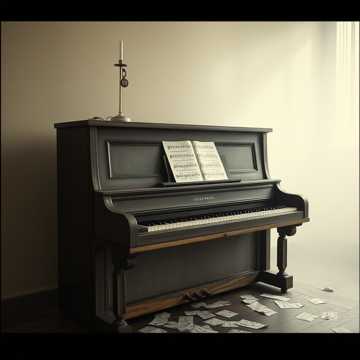 The piece opens with prepared, muted piano in a low register, each note percussive and resonant at a languid, irregular pulse, Soft cello drones and bowed guitar harmonics seep beneath, forming a fragile, weathered tapestry, Faint choral breaths swell and recede, blending with brief fragments of static, distant screams, and page turns, The atmosphere thickens as textures drift and unfold, the pulse drifting like faltering memory, At the end, the theme returns on high, naked piano before vanishing abruptly, leaving silence saturated with loss