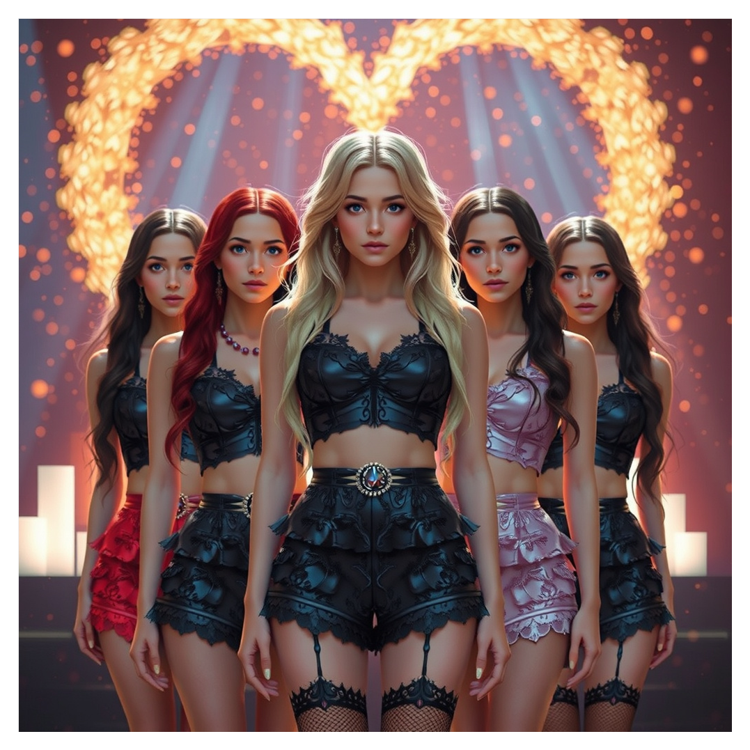 Cinematic K-Pop mit Rock-Elementen (E-Gitarre + EDM-Elemente + Orchestrale Layer), 120â128 BPM, catchy, females voice, cinematic pop with uplifting energy