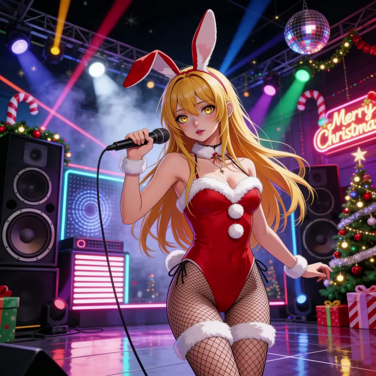 A catchy, upbeat modern pop Christmas song with lush harmonies, shimmering synths, and festive sleigh bells, The lead vocal is a confident, soulful female singer with a warm, airy tone and agile vocal runs, The melody feels romantic and joyful, perfect for holiday parties or cozy winter nights, Production blends R&B-inspired pop with sparkly Christmas energy โ bright piano chords, groovy bass, smooth percussion, and twinkling chimes, Lyrics celebrate love, snow, lights, and togetherness under the mistletoe, Energetic yet dreamy vibe, with a polished, radio-ready sound