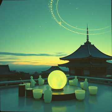 Virtuoso Shamisen, Technical Koto Runs Shakuhachi Amazing Technique, Master-class Groove, Ghost Notes Snare & Taiko, Dry Acoustics, Close Miking (ASMR quality), Tuning Noises, Call & Response Interplay, EPIC Counter-melody, AMAZING JEWELS EVERYWHERE, Super-Evil Glossy Horns, Improvisational Jam Session, Hichiriki vs Sanshin, Biwa Slap Percussion, Taiko Polyrhythms, Complex Time Signatures (7/8, 5/4), HEAVY Taiko drum-break, ZEN Energy, Organic but HEAVY Textures, Dynamic but Sensual Swells, Unpredictable Structure, PERFECT QUALITY FOR ALL, neo-artistic/hyper-sensual catharsis, ‑Electric-guitar, ‑fusion, ‑gratuitous hype, ‑excessive build-ups, ‑overhyped drops, ‑constant risers/impacts, ‑forced "hands up" chants, ‑shouty vocals, ‑belting that breaks the mood, ‑yelling ad-libs, ‑over-sung choruses, ‑screaming top-lines, ‑childish FX, ‑toy-like timbres, ‑cartoonish sounds, ‑nursery-rhyme melodies, ‑cheesy meme samples, ‑airhorn/siren cliches, ‑relentless looping, ‑1-bar loop fatigue, ‑copy-paste arrangement, ‑no variation within sections, ‑static harmony/groove, ‑lack of development, ‑predictable structure, ‑weak transitions, ‑no breakdowns or breath, ‑flat narrative arc, ‑overstuffed arrangement, ‑no space in the mix, ‑wall-to-wall sound, ‑crowded spectrum, ‑competing mids/lows, ‑overplaying by all parts, ‑zero negative space, ‑gratuitous snare rolls, ‑forced EDM-style drops, ‑random key changes, ‑aimless tempo lifts, ‑brickwall limiting, ‑over-compression, ‑harsh sibilance, ‑brittle highs, ‑muddy low-mids, ‑boomy sub, ‑excessive reverb wash, ‑slapback clutter, ‑mechanical quantization, ‑grid-locked timing