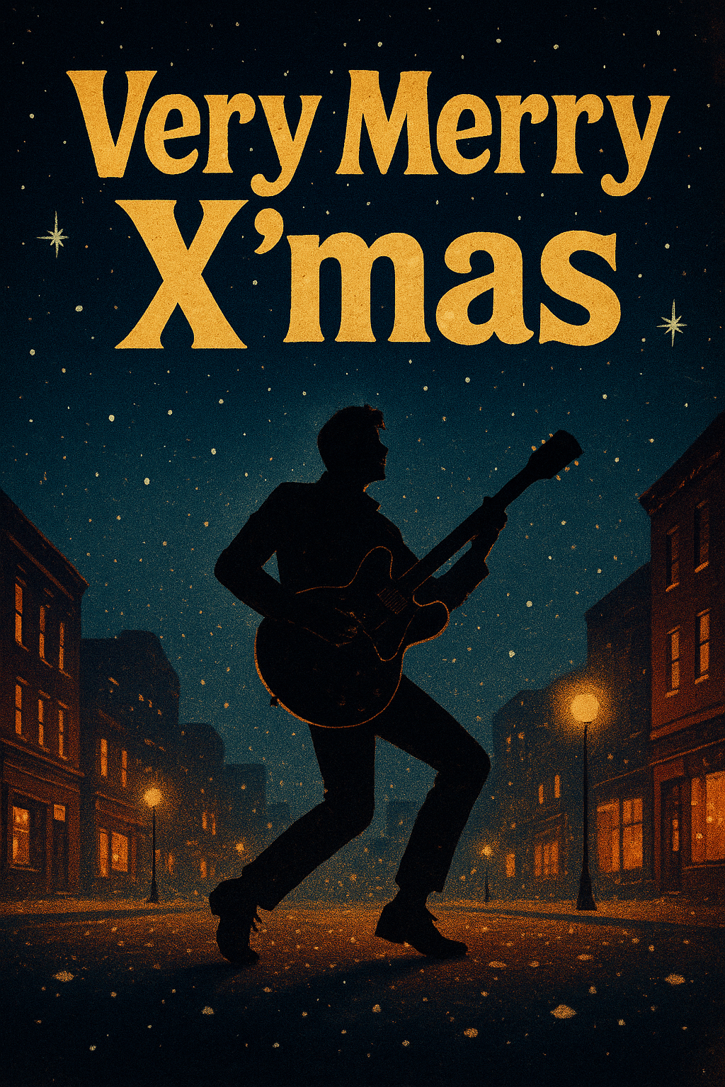 Up-tempo Christmas rock, Bright electric guitars, tight drums, strong sleigh bells & jingle bells throughout, Catchy, addictive, slightly quirky melody, Energetic male vocal, crisp phrasing, punchy chorus, Mix of rock’n’roll drive and Christmas sparkle, Add subtle winter ambience: cold night air, distant choir pads, shimmering chimes, Chorus must feel explosive and festive, Slight garage edge but polished, Lyrics in English