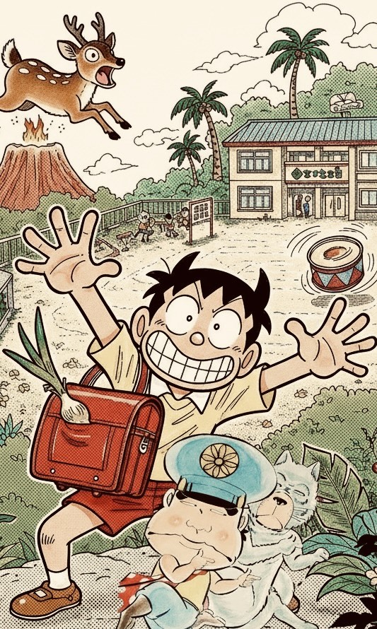 A slow, emotional Japanese ballad with a bittersweet, nostalgic feel, Vocals should be heartfelt and expressive, with occasional children’s chorus backing in the chorus for surreal and whimsical effect, Instrumentation: piano, soft strings, gentle acoustic guitar, light percussion, The rhythm is slow and flowing, emphasizing emotion and the contrast between the playful nonsense lyrics and the sentimental music, Mood: melancholic, surreal, yet tender and captivating, Length: about 2-3 minutes, Lyrics in Japanese (provided)
