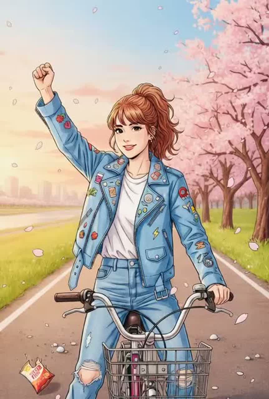 Style: Retro Japanese delinquent-style rock’n roll, inspired by 80s biker gang aesthetics but without using any specific names, shining gold luminosity