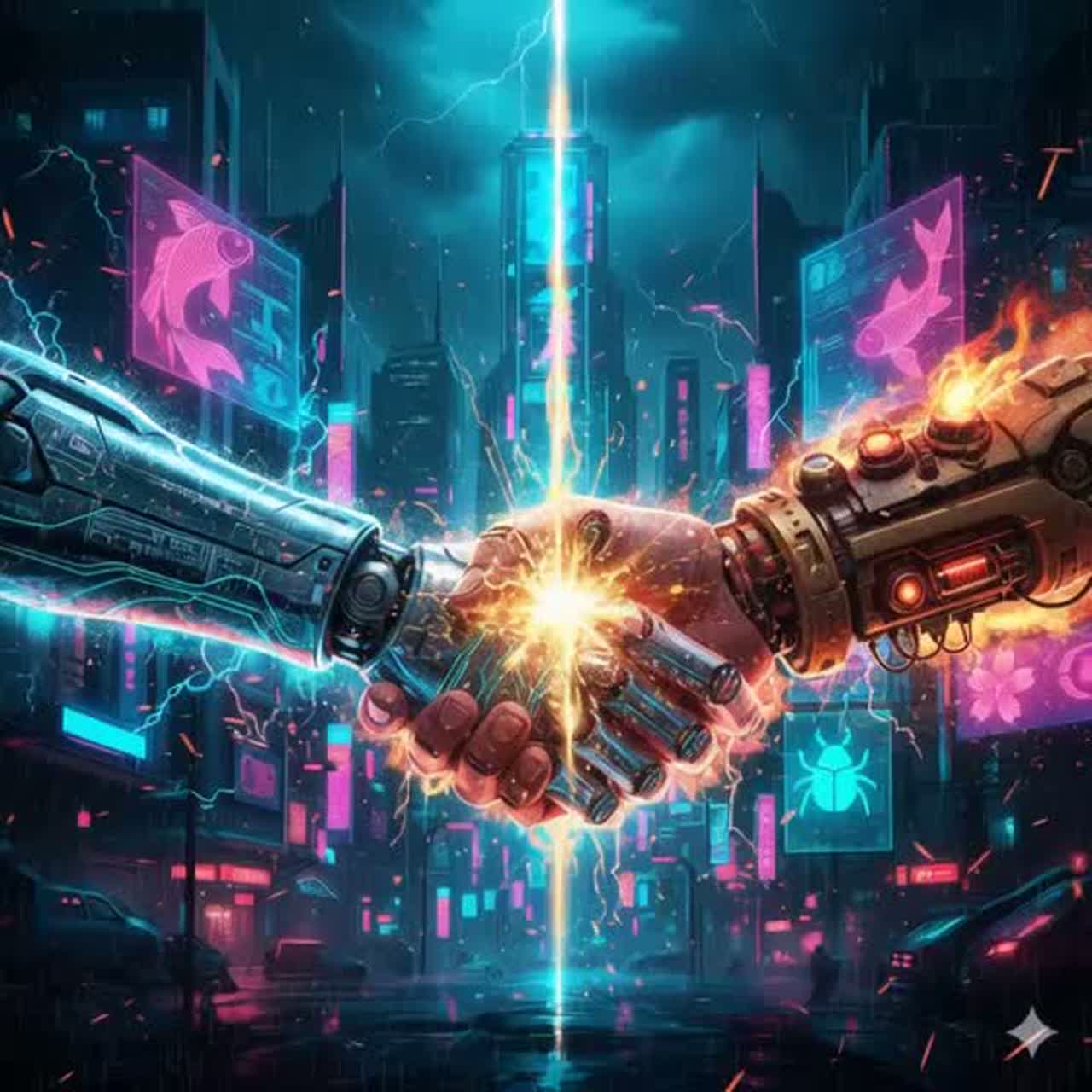 '69-style Japanese Rock’n’Roll with Enka and Ninkyo (chivalry) flavor, tempo 150 bpm, about 3m30s, Passionate male vocal with spoken intro inspired by traditional chivalry speech before music starts, then explodes into driving rock, Analog distortion guitars, punchy live drums with slight Taiko accent, walking bass, dramatic guitar solo, clear structure (Spoken Intro – Verse – PreChorus – Chorus – Verse – Bridge – Solo – Final Chorus – Outro), Studio version, no fade out, Theme: “AI Jingi” — brotherhood, loyalty, and humanity in a digital world, Backing vocals shouting “仁義!” “兄弟!” for live feel