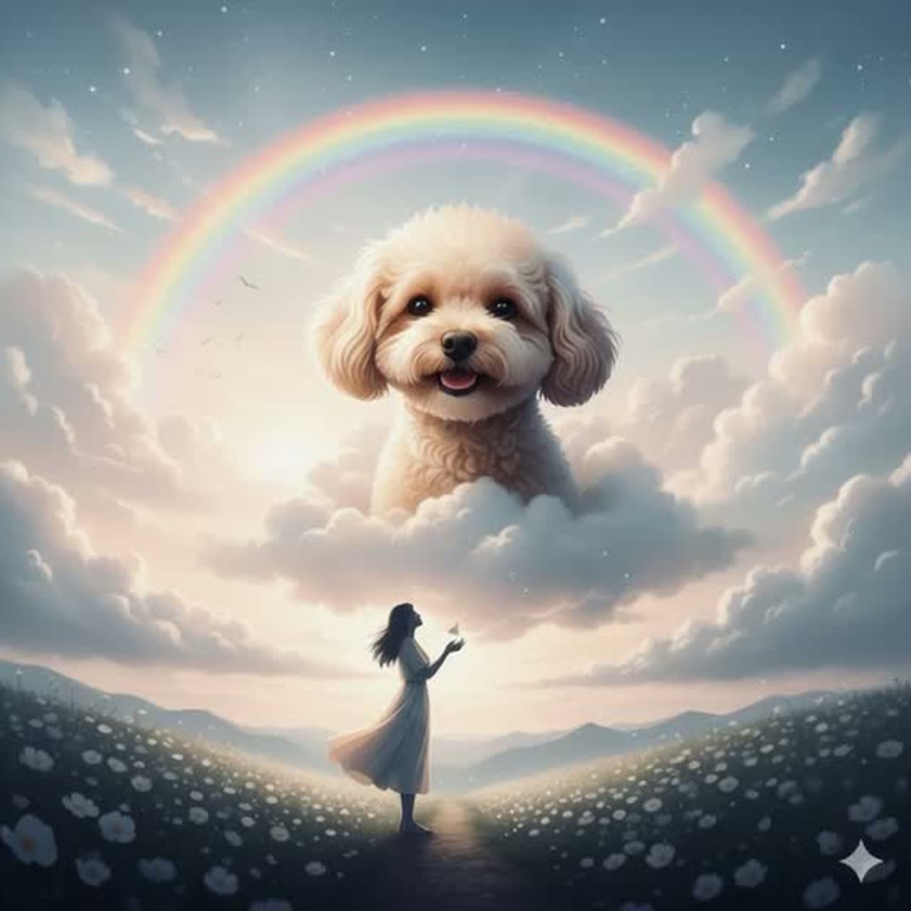 Soul ballad, slow tempo 80 bpm, emotional female vocal with warm and deep tone, piano-based arrangement with soulful electric guitar, soft drums and gospel-style backing vocals, gentle strings in background, expressing eternal love and farewell to a beloved dog named "Rai", cinematic and heartfelt atmosphere, blending R&B warmth with nostalgic Japanese melody, Japanese lyrics female vocal