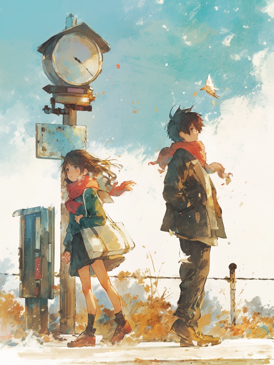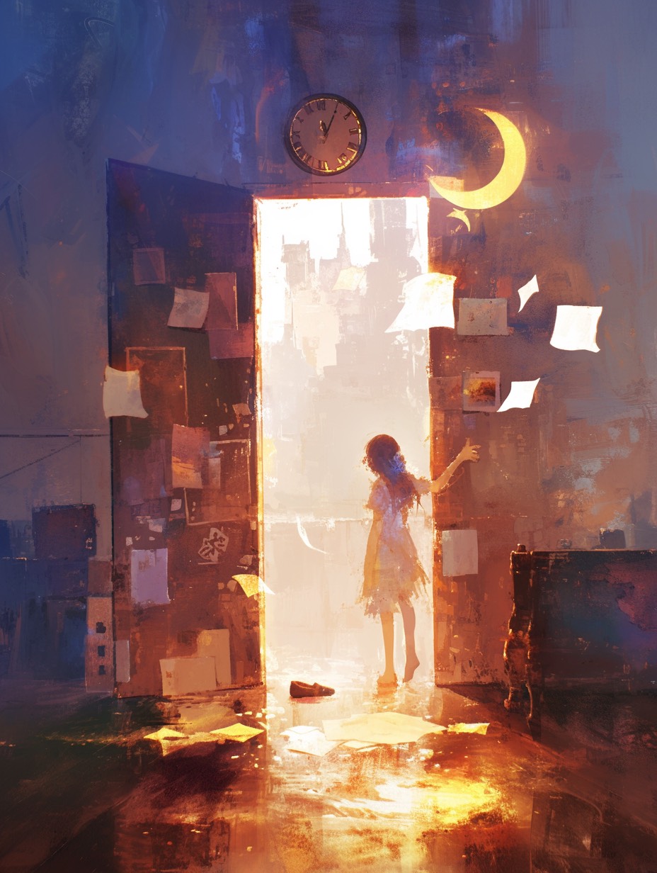 Female vocal, slightly husky and natural voice, vocaloid-like, slightly recitative pronunciation, slightly flat, electronic ambient, pleasantly understated melody and rhythm, unobtrusive realism, modern, electronic music box tone, shimmering and fragile timbre, gear-like pulses forming rhythm, pendulum-like swinging synth, sound fragments messaging each other like a dialogue, nostalgic clockwork ambience, faint mechanical humming, emotional nuance restrained yet poetic, fragile balance between mechanical coldness and human warmth, subtle glitch textures, minimalistic but lyrical, dreamlike storytelling through time, shadow of memory flowing softly, whispering cadence with pauses and breathing, overall delicate and mysterious atmosphere, evoking drifting through gears and fading light, a soundscape where moments feel like letters sent but never received