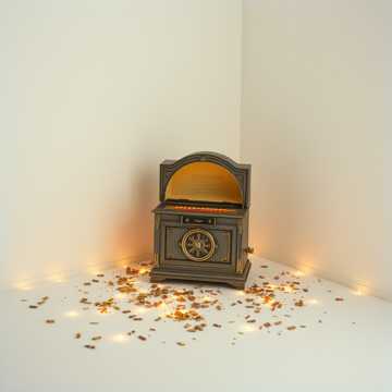 Female vocal, slightly husky and natural voice, slightly recitative pronunciation, slightly flat, airy and modern electronic ambient with subtle vocaloid-like nuance, minimal yet warm synth pads, soft low-end pulses, delicate reversed and time-stretched textures, faint granular delays and glitch noise, layered with gentle electronic music box tones and high chime sparkles, slow to mid tempo with steady, understated beat, wide stereo field and floating reverb, blending fragile calmness and quiet intimacy, evoking the act of collecting trivial, meaningless fragments and preserving their quiet value, small emotional swells and releases, inspired by the tender eeriness of a forgotten room where an old digital music box plays, seamlessly integrating subtle glitches as dust on an old recording