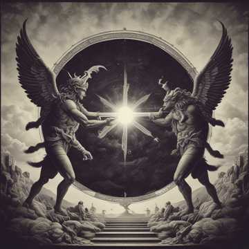 Neo-classical opera / power metal ballad / symphonic metal / ghostly female chorus / ethereal choir / male theatrical vocals / operatic baritone / operatic drama / back-and-forth dueling sections / rapid-fire vocal trading / epic orchestral / soaring guitar solos / bombastic piano / cathedral organ / timpani / string sections / 120 BPM power ballad / cosmic romance / emotional intensity / theatrical delivery / operatic female ensemble / dramatic dynamics / quiet-to-explosive / symphonic crescendos / twin flame mythology / celestial atmosphere / reverb cathedral / grandiose production / anthemic choruses / storytelling vocals / passionate delivery / time-transcendent / cosmic scale / eternal longing / call-and-response technique / powerful vocal projection / wide dynamic range