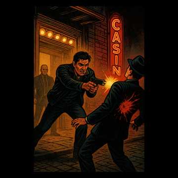 uptempo Outlaw country song about an old cowboy gun fight with a gravelly male led singer and a guitar solo