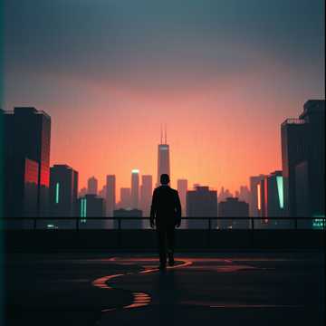 Dreamgaze, Synthwave Rock, Alternative R&B infused with Post-Rock climaxes, Sounds like a love song transmitted from a rooftop in future 2080, Sound: Warm, shimmering synth pads blending with clean, chorus-drenched electric guitars, Basslines are melodic and pulsing, like a heartbeat, Drums are crisp, hip-hop inspired beats that explode into live, crashing cymbals and toms, Soundscapes of city synth, distant electronic wave transformed into melodies, shared earbud static, and the sound of old modular synth mixing with ambience, Production: Intimate, close-mic'd verses that feel like whispers in a dark room, Choruses explode into vast, colorful, and anthemic sound, Bridge is a soaring, instrumental duet electric guitar and synth as lovers, The finale is a crescendo of pure, unapologetic joy and noise