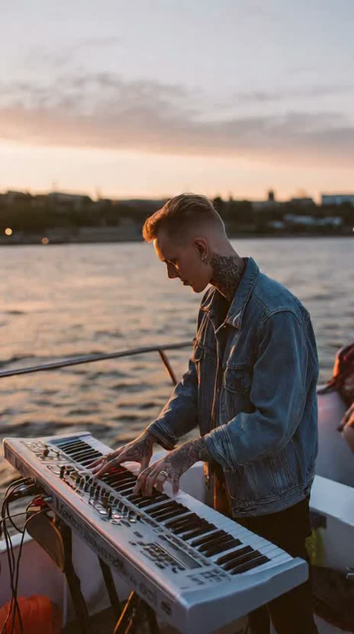 synthwave, retrowave, futuresynth, Synth-heavy, Driving tempo, distortion guitar syncopated with drums, live concert feeling