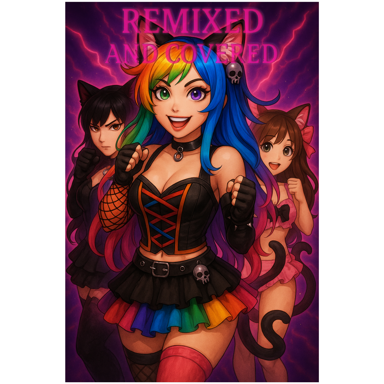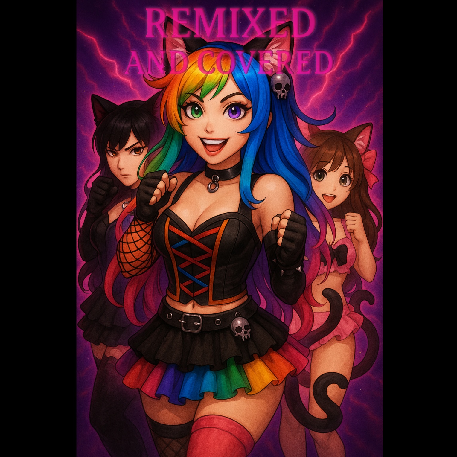 Candy-Cat just can't be stopped, her psycore reign undulled! Using the most liked song from each of our followers and any personas they may have, and the five most liked tracks we've created ourselves, amalgamate them tightly as Candy-Cat remixes her friend in her psycore/k-pop/dubstep blend