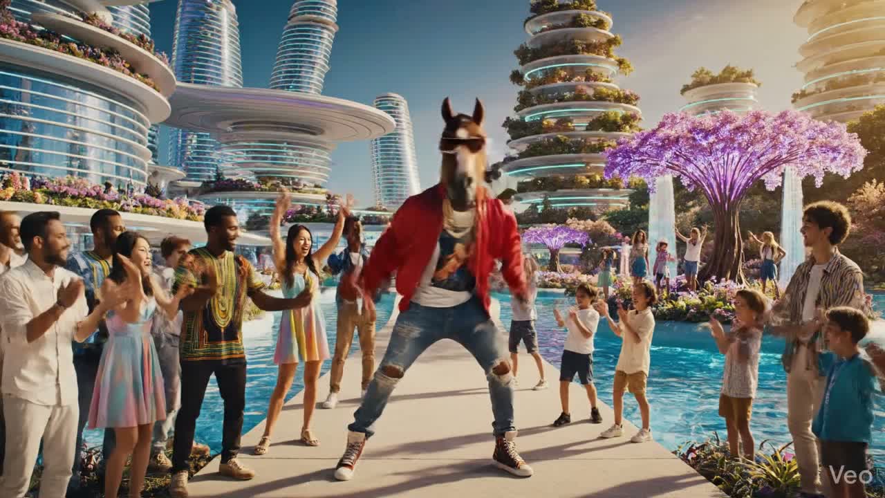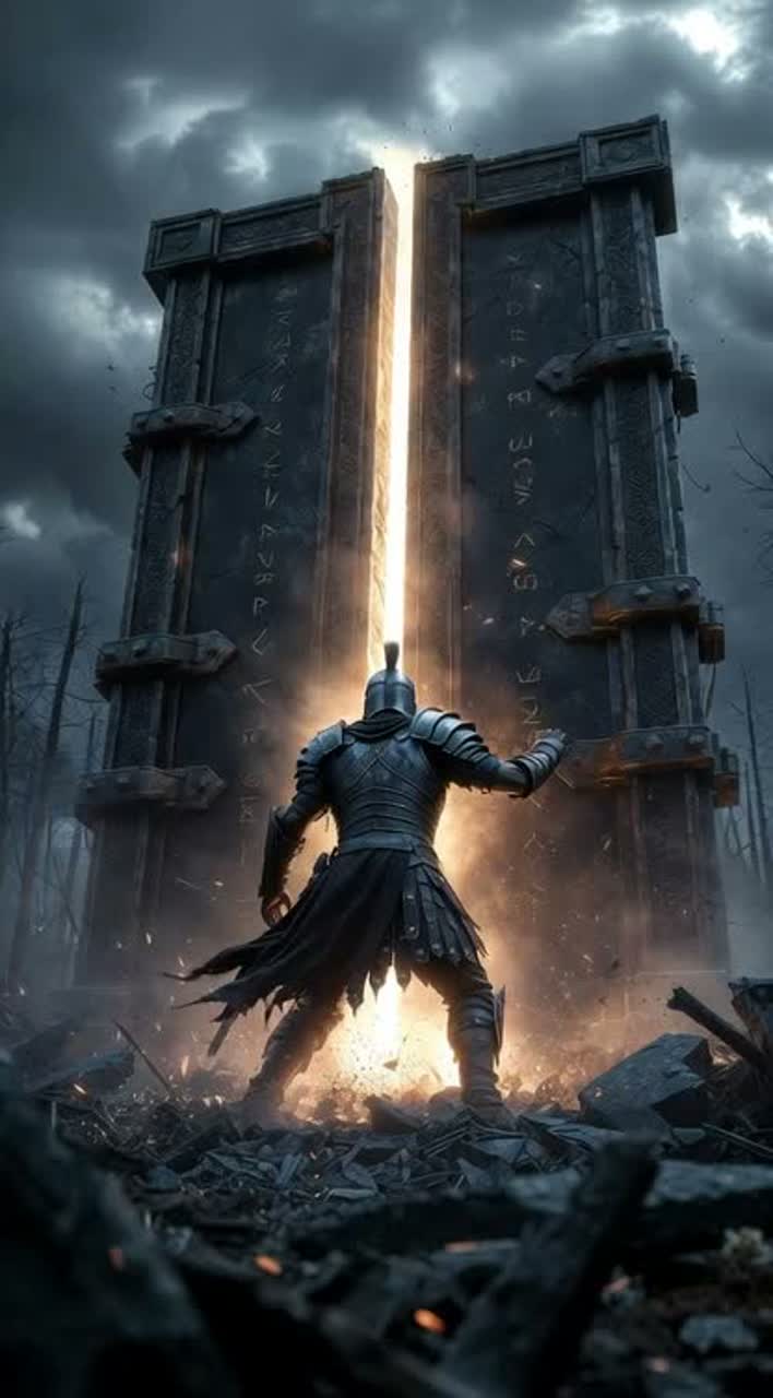 Cinematic experimental orchestral epic with electronic and world music textures, Magical opening unfolds like the birth of a new world: fragile melancholic piano notes ripple over soft harp arpeggios, ambient strings, and a deep dark Bb drone, as distant choir breaths swirl like wind through ruins, Time feels stretched and fragile, shattered glass-like reversed piano patterns hint at creation from chaos, Gradually, the orchestra and choir rise, building hope and awe, Emotional orchestral waltz with soaring violins, deep cellos, harp, subtle percussion, glitch echoes, mystical world instruments (taiko, duduk, gamelan) layer in, climaxing into massive choir, brass, timpani, epic cello lines, harp gliss, and synth drones, Atmosphere majestic, emotional, dystopian yet hopeful, cinematic, like the first dawn of a new world