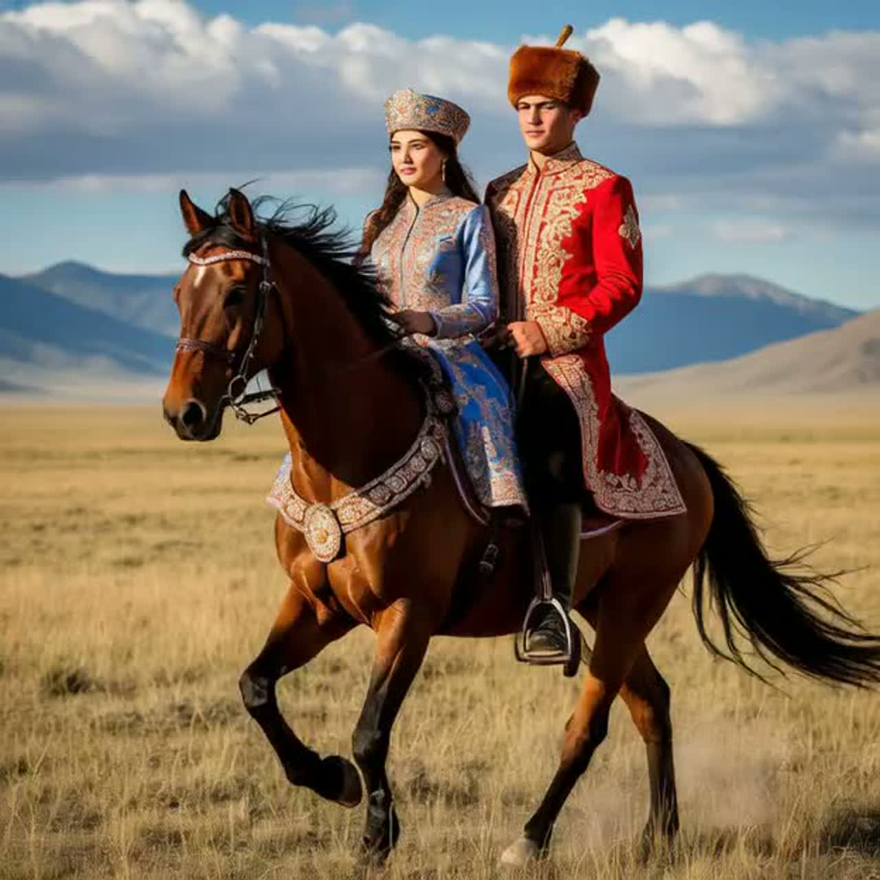Kazakh folk ballad in modern treatment, melodic love story, wind noise, steppe, Kazakh folk instruments