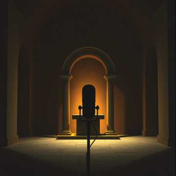 Atmospheric spoken word piece with a dark, ambient soundscape, The track features a deep, resonant baritone male voice delivering a German monologue with a rhythmic, almost liturgical cadence, The vocal is dry and intimate, positioned forward in the mix with subtle reverb, The instrumentation is minimal, consisting of a low-frequency drone, sparse cinematic pads, and occasional metallic percussive textures that create a sense of tension and solemnity, The tempo is slow and free-form, lacking a traditional drum beat or melodic hook, The production is clean and spacious, emphasizing the gravity of the spoken delivery