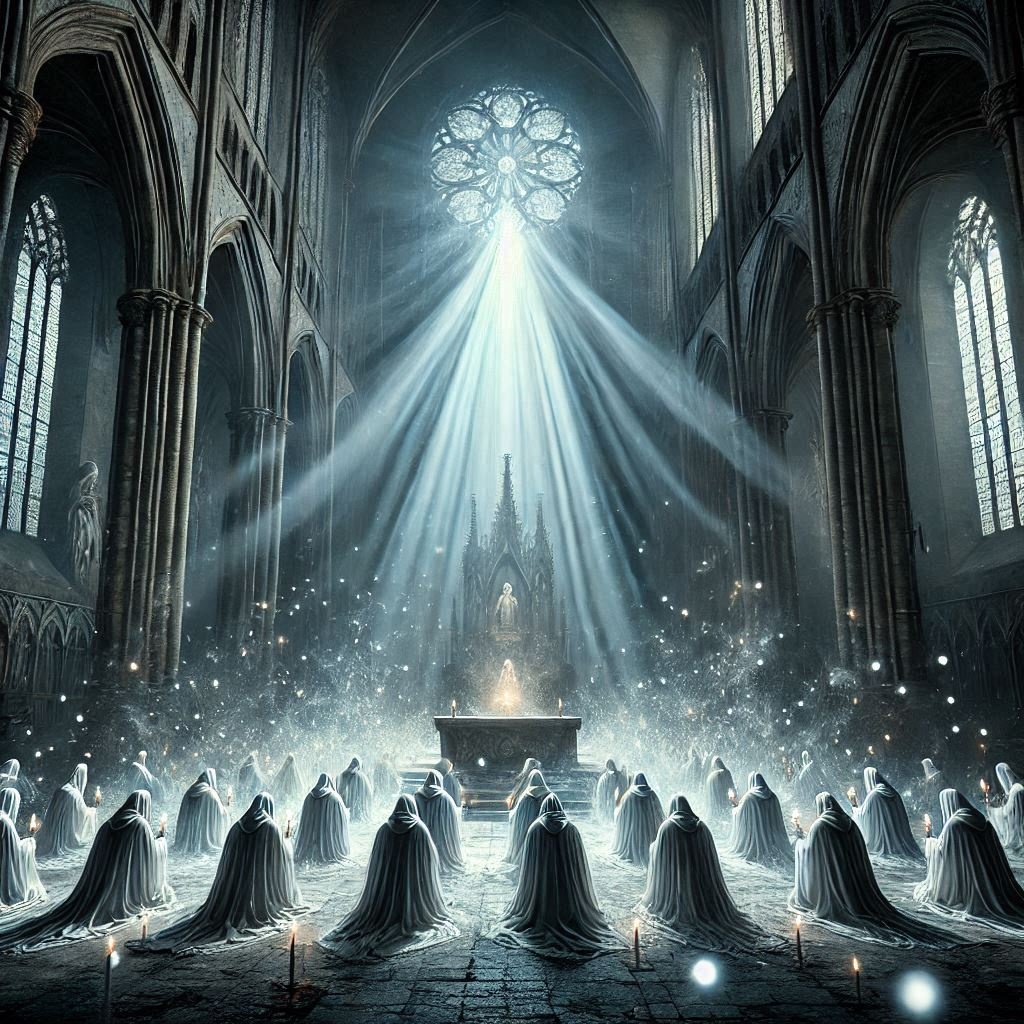 dark ambient, Gregorian chant, pipe organ, male voices, old monastery music