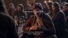 Psycedelic, trance, deep low male bard, with melancholic and solemn and resonant tone, plucked Finnish kantele, mesmerizing and rhythmic shamanistic witch drums, Finnish folk music, storytelling in taverna