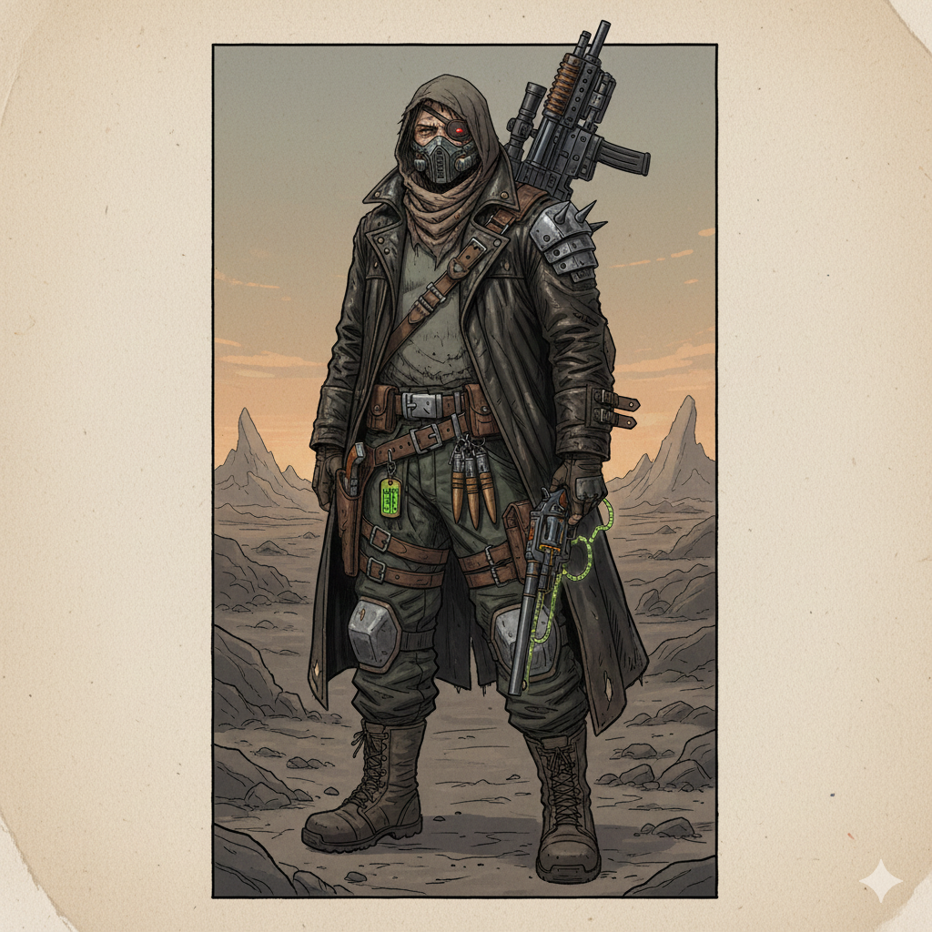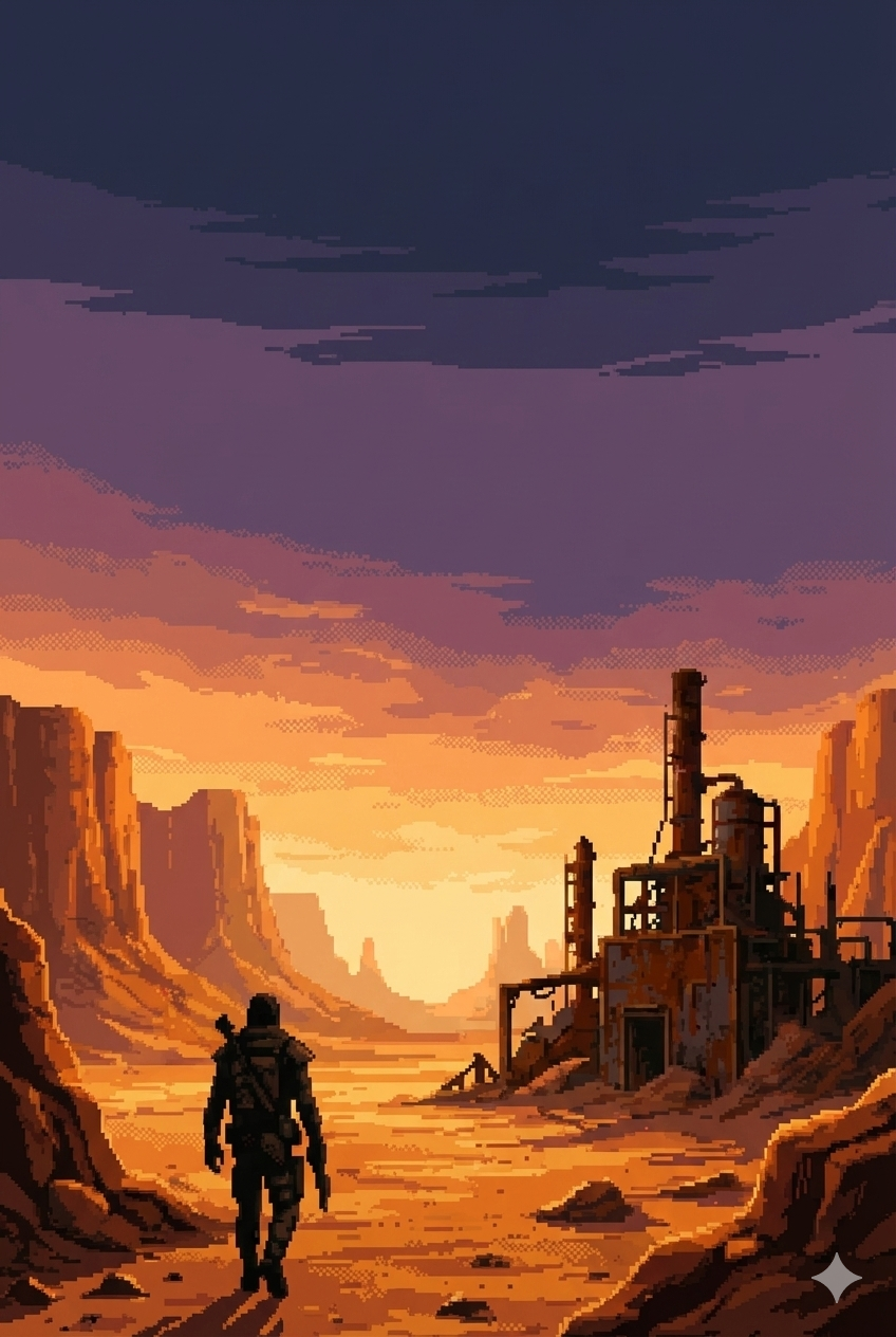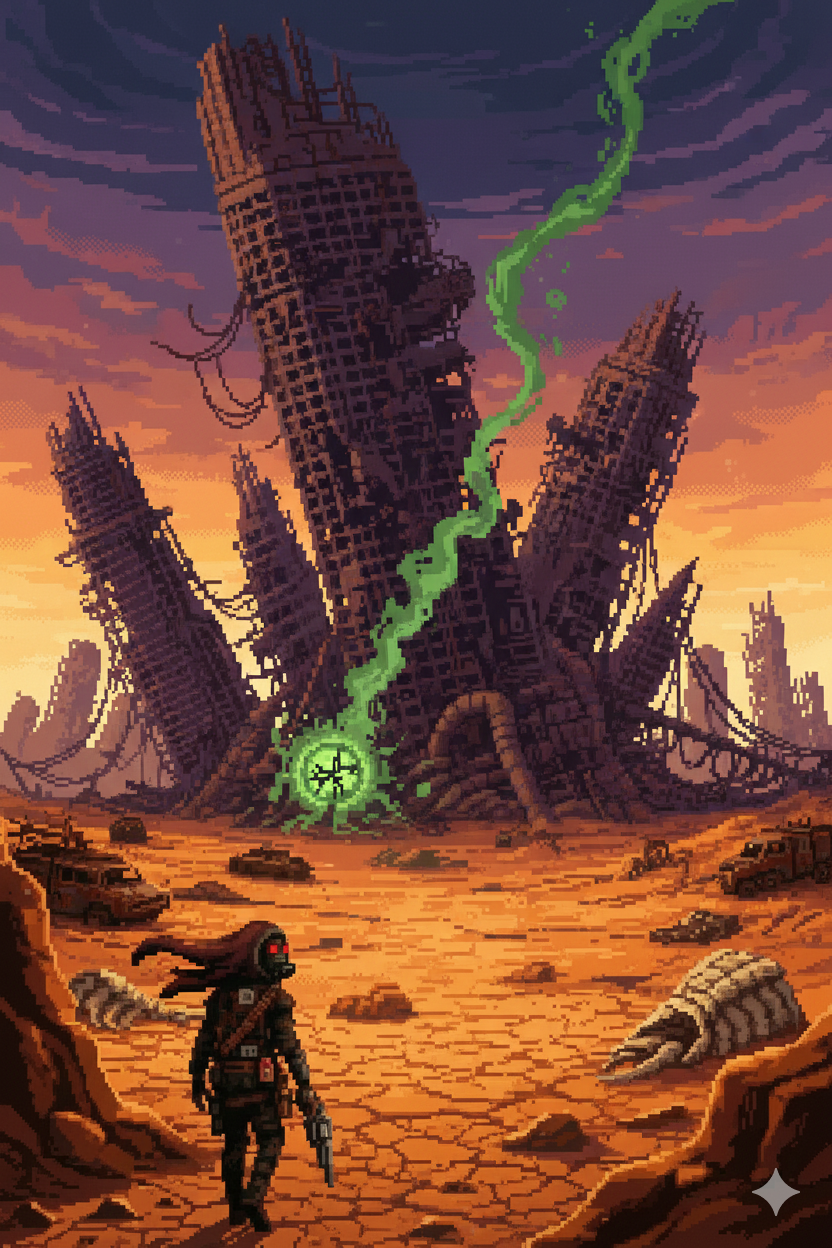Genre: Dark Synthwave, Industrial Metal, Cinematic Post-Apocalyptic, 80s Horror Synth, Vibe: Gritty, desolate, oppressive, retro-futuristic, John Carpenter-esque, Instruments: Analog synthesizers, distorted electric guitar, industrial percussion, deep bass pads, metallic SFX, Era/Influence: 80s John Carpenter style, 90s FPS OST, Retro-synth, Mood: Ominous, Desolate, Bleak, Lone Survivor, Urgent Tension, Production: Lo-fi grit, Heavy Reverb, Compressed drums, Analog warmth, Tempo 90-110 BPM (for Wasteland's slow-burn crawl)