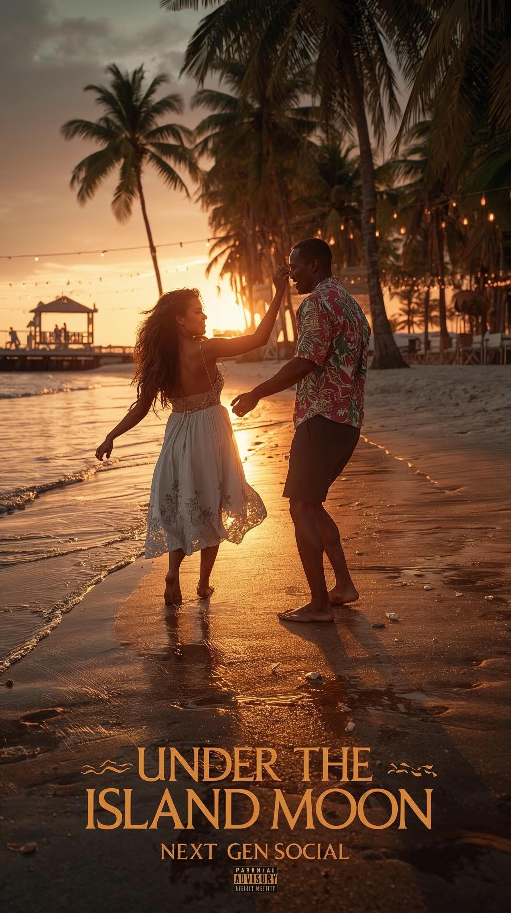 A romantic Love-Reggae / Dancehall track with warm 808 sub-bass, crisp snares, subtle percussion, rhythmic synth lines, and soft steel drum accents, Gentle synth pads add depth, while ocean waves and tropical wind FX create an intimate island vibe, Male/Female Patois vocals deliver expressive, articulate lyrics with smooth, flowing delivery, Light harmonies, echo, and reverb enhance chorus and bridge, giving a live, immersive feel, Mid-tempo, love-focused, fully Dancehall-driven, perfect for sunset romance, dancefloor groove, and tropical celebration