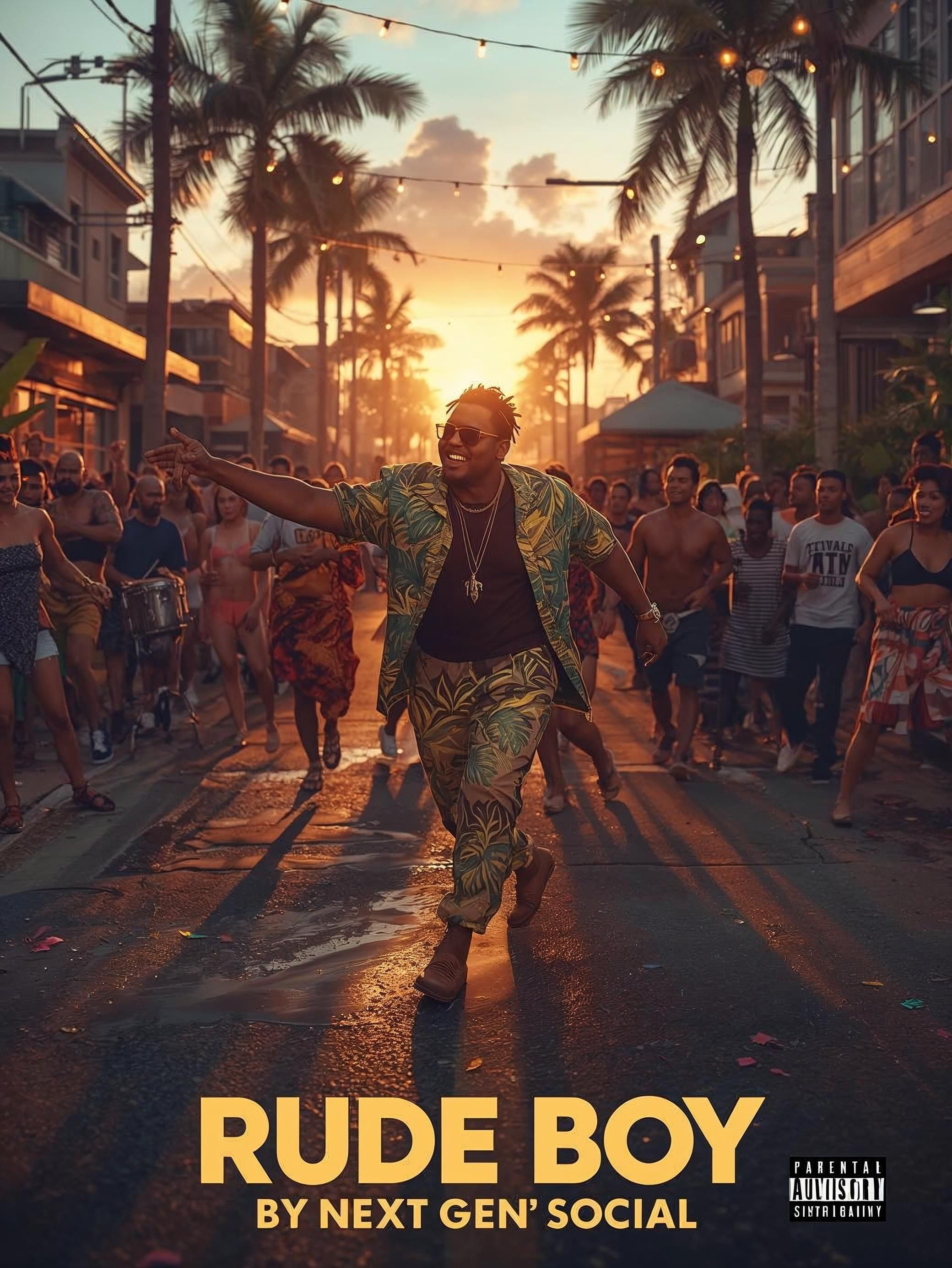 High-energy Dancehall/Reggae Fusion with punchy 808 sub-bass, crisp snares, tight hi-hats, and rhythmic synth brass/bell motifs, Hypnotic, repetitive synth lines and airy pads add depth, while subtle Caribbean percussion keeps the groove alive, Vocals explode with fast, articulate Patois delivery, clever wordplay, melodic hooks, and crowd call-outs, Ad-libs, vocal chops, pitch slides, and syncopated tricks accentuate the beat and give the lyrics extra punch, Early hook and drop ignite the energy instantly, Perfect for street vibes, festival hype, and club play, this polished yet raw riddim-driven anthem ensures listeners move, groove, and feel the tropical intensity from start to finish