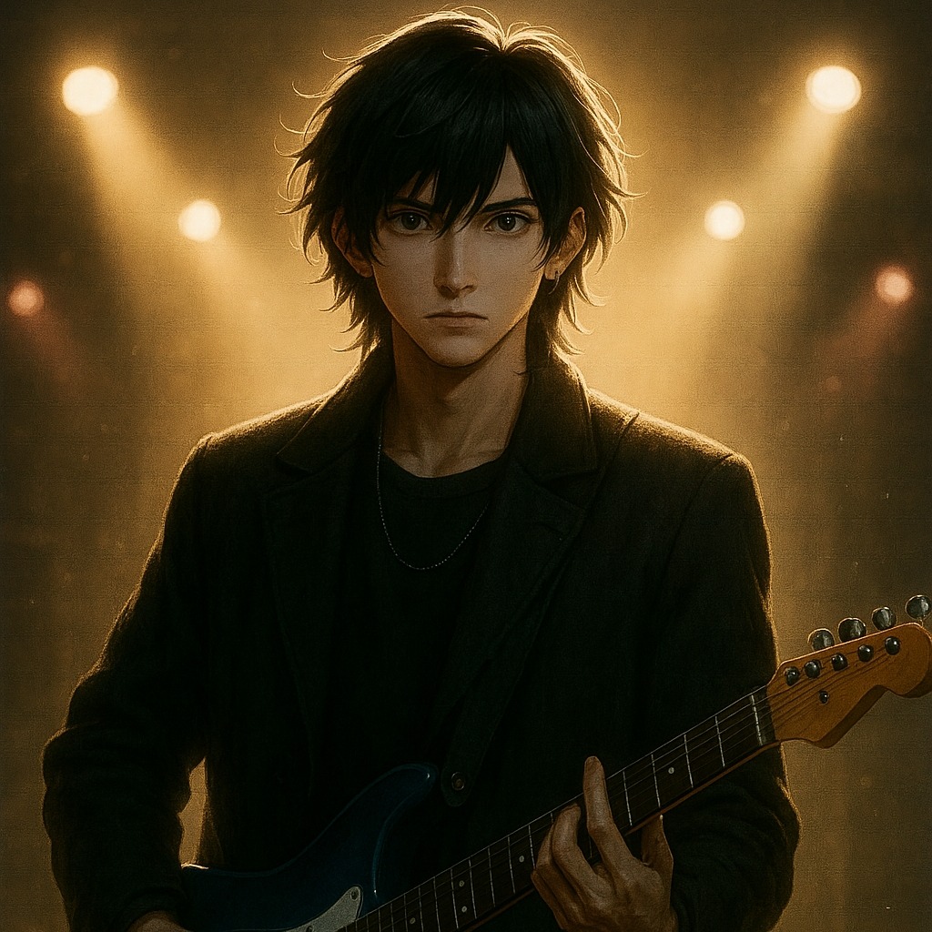 Clear, smooth male vocal with a transparent tone, Dark, urban track around 80 BPM blending Lo-Fi textures with subtle rock elements, Minimal clean guitar, warm tape-like ambience, minor-key mood, Chorus is sung cleanly and elegantly without shouting, Bridge features a quiet emotional release with trembling but smooth vocals, Cinematic, modern Lo-Fi × rock atmosphere