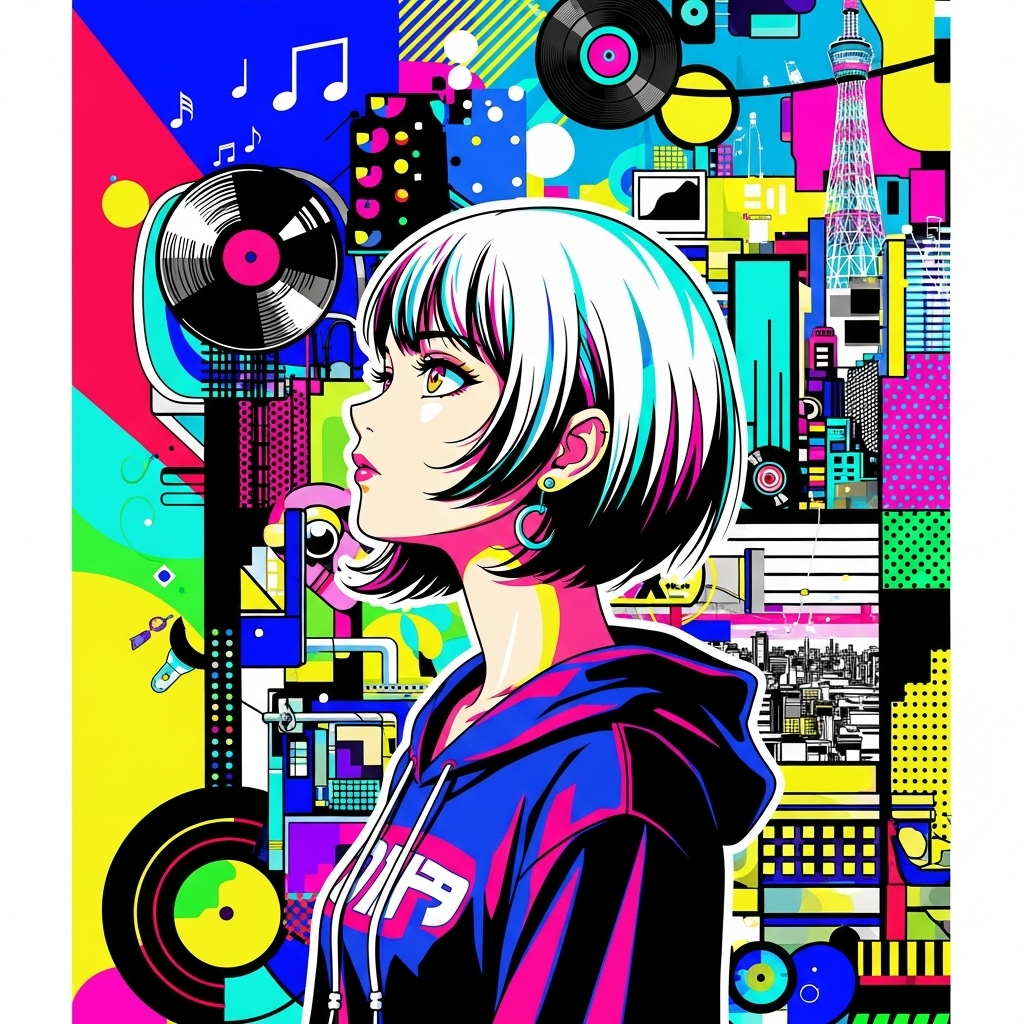 chill, math lo-fi, french pop, art core, p-funk, 4step, waterdrop synth, shoegaze atmospheric, playful and emotional, click sound, tremolo, turntablism, groovy, sampling, cute anime female vocal, languid, teenage ennui and unique girl voice, Japanese and English lyrics, stylish sampled vocals, futuristic, unpredictable, echo, reverb, funk, distorted 808s, sampler, drum machine, minimal trap, reverb, moody night atmosphere