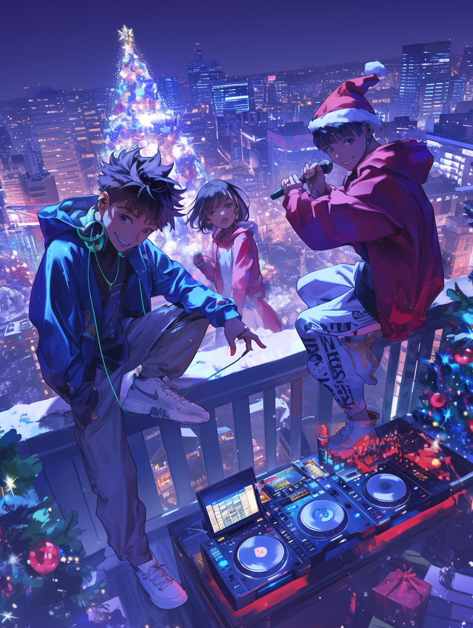 High-Energy Japanese Melodic Rap, Hyper Catchy Rap Song, Anime Opening Style Rap, Danceable Rap Track, Fast-Talking Melodic Flow, Quirky Intellectual Rap, Playful but Aggressive Tone, Overloaded Lyrics, Earworm Hook Driven Rap, Modern J-Pop x Hip Hop Fusion, Stylized Performance Rap, Non-Traditional Rap Structure, Cool Holiday Rap