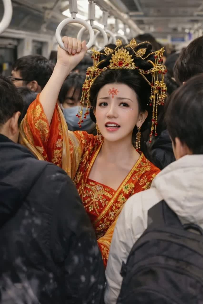 Female vocal, theatrical, cheeky, slightly exaggerated like a vintage show-tune diva; 128 BPM Big Band Swing × Palace Comedy; bold brass stabs (trumpet, trombone, sax), upright bass walking groove, crisp swing drum kit with brushes and snare accents, jazzy piano comping, plus palace gongs, wooden clappers, small bells, and pipa flourishes; glamorous old-Hollywood swing energy blended with imperial comedic swagger; intro hits immediately with playful brass and jazzy flair; verses delivered with dramatic timing and cheeky palace attitude; pre-chorus rises with muted brass and snare rolls; chorus explodes into full big-band swing with flashy brass blasts, palace percussion sparkles, and diva-like ad-libs; overall mood vintage, humorous, bold, meme-ready, like Yang Guifei starring in a 1930s jazz musical;