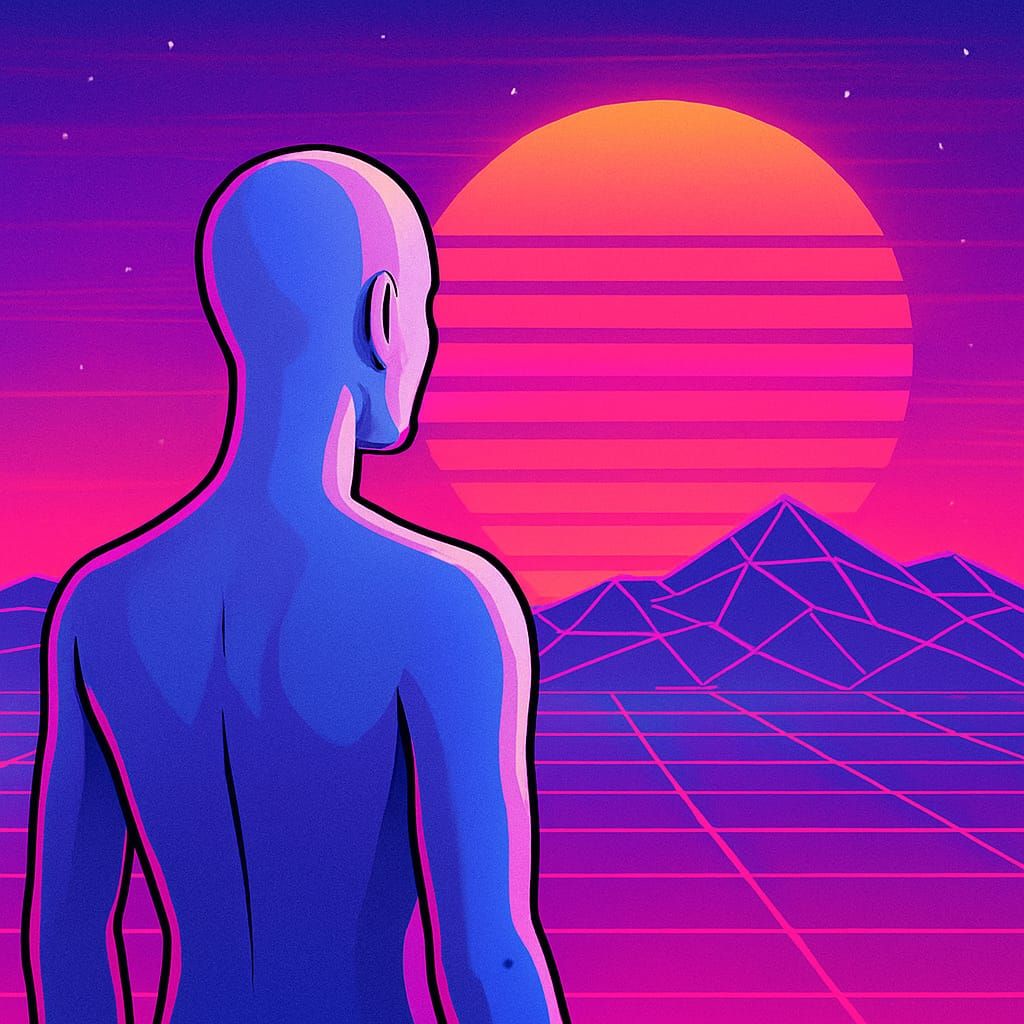 future, sunset vibes with lush synths and an epic build; male relaxed vocals with an undercurrent of intensity, male vocals, vaporwave