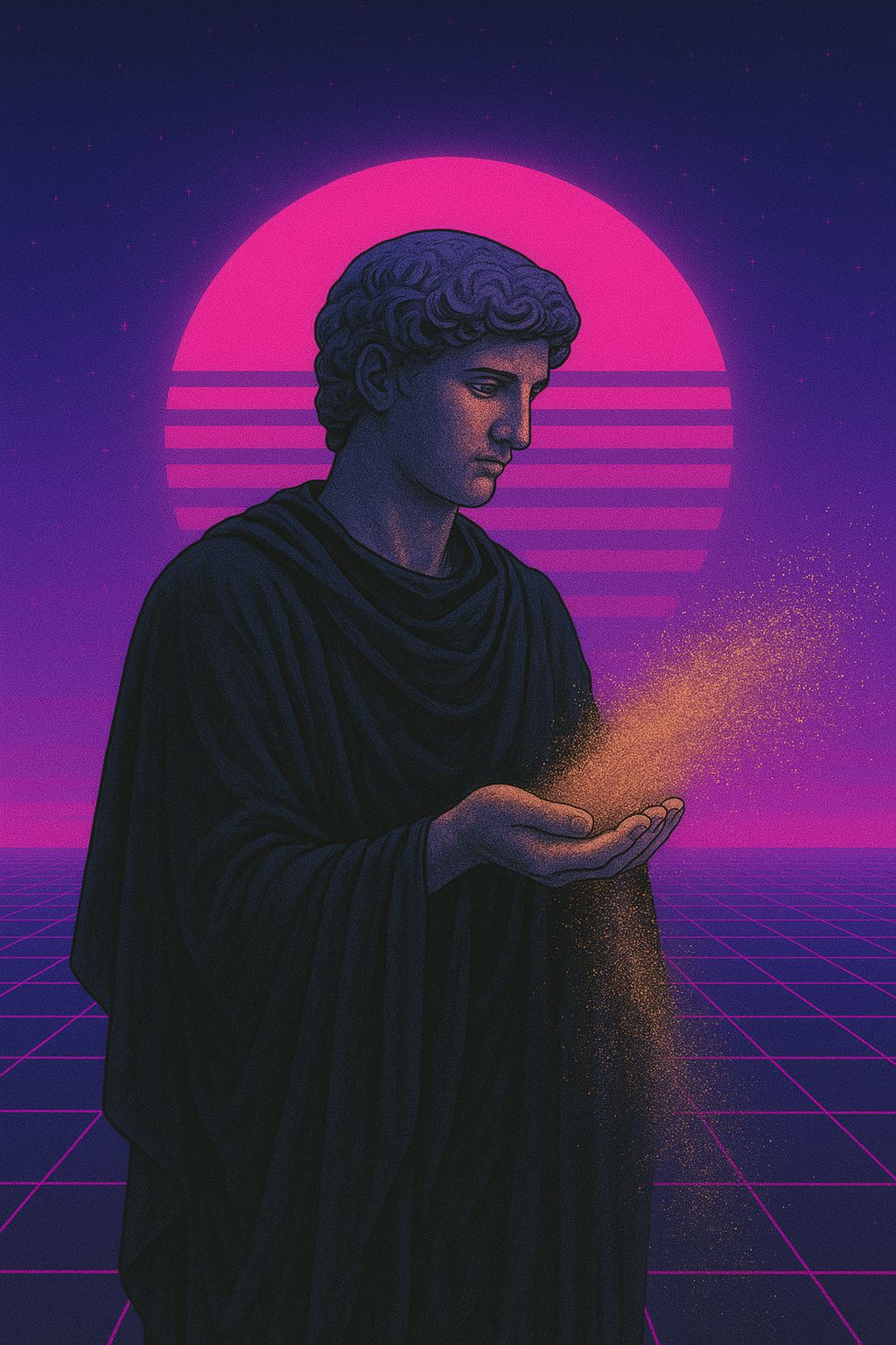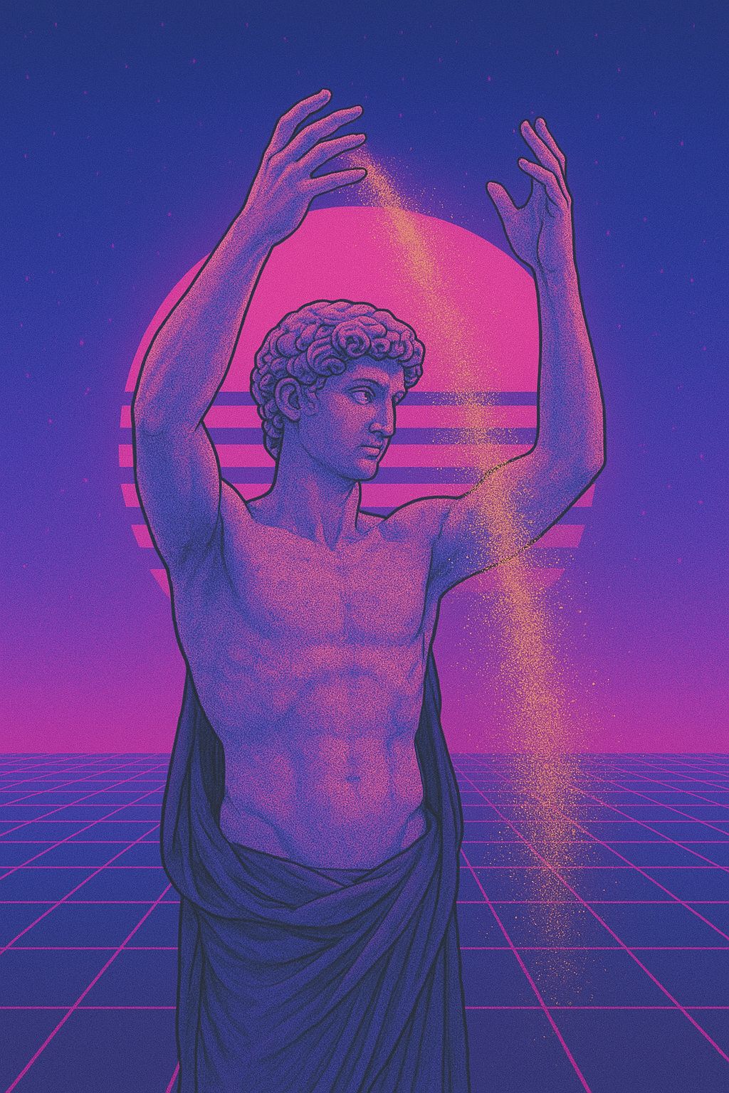 vaporwave, hypnagogic drift, sampled audio, faux-utopian, nostalgic, aesthetic, late-night lo-fi, ambient, surreal, relaxing, reflective