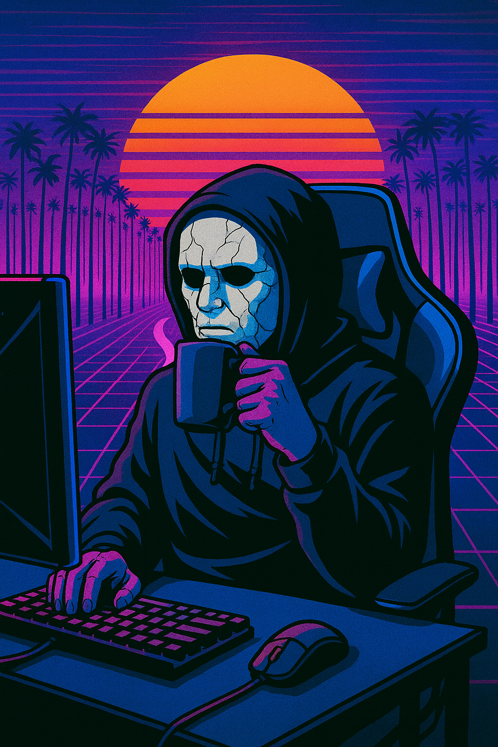 ambient reverb, and jazzy saxophone accents, the rhythm is hypnotic yet groovy, smooth basslines, punk, mellow, vaporwave, electro swing, slow, funk, jazz, with a relaxed, saxophone, lo-fi, vaporwave meets funk with a lo-fi chill twist; mellow synth pads, relaxing, surreal vibe that pairs stoned absurdity with an aesthetic charm, layers of house-inspired beats and electro swing touches add movement to the darkwave undertone, male vocals, ambient