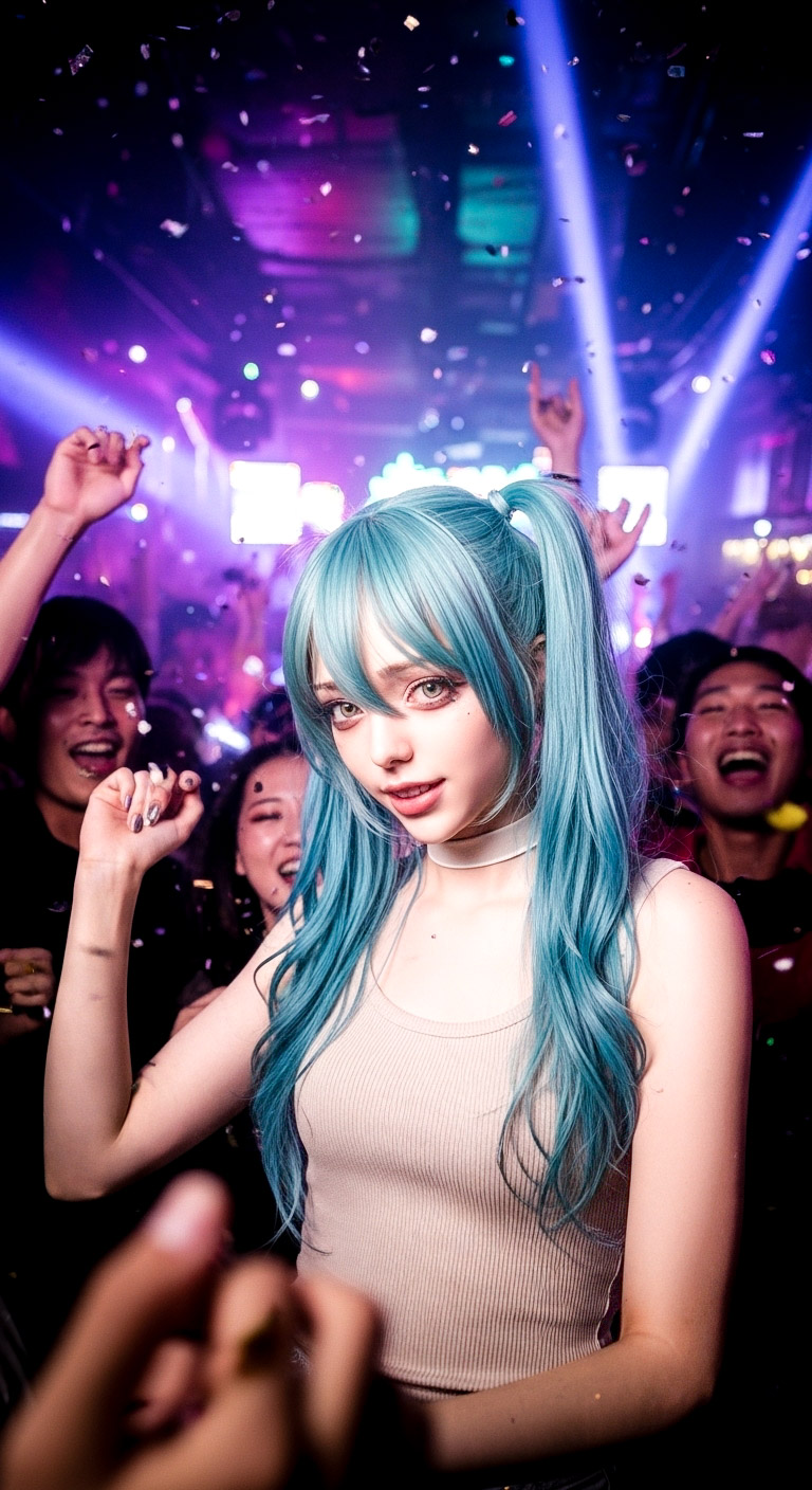 Electro Swing, Hyper Eurobeat, Bouncy, Future Funk, french electro house, Hyper-pop, Vocaloid, high-pitch Miku voice, syncopated, bass boosted, vibrant, hi-fi master recording, high definition sounds