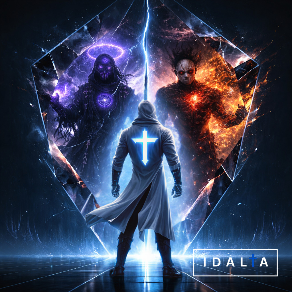 A high-energy Christian Hip-Hop track featuring a driving, syncopated drum pattern with crisp snares and a heavy sub-bass foundation, The arrangement is centered around a dark, atmospheric minor-key piano loop and eerie, high-pitched synth textures that create a sense of tension, The male vocals are delivered with a rhythmic, fast-paced flow, utilizing aggressive staccato delivery and occasional melodic inflections in the chorus, The production is polished with modern trap influences, featuring tight vocal doubling, subtle reverb on the hooks, and dynamic transitions between the verses and the anthemic chorus, The tempo is approximately 145 BPM, maintaining a consistent, urgent momentum throughout