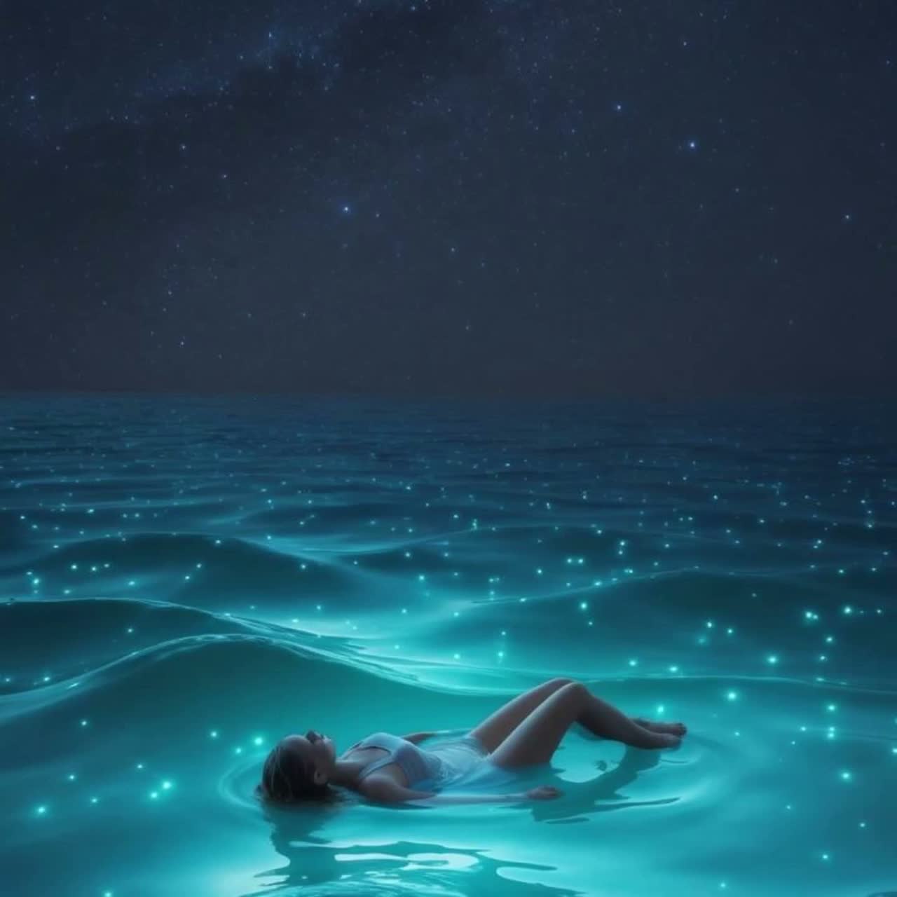 ambient, post-rock, intimate, near-whispered female vocals, vulnerable, gentle synth pads, cello, bioluminescent atmosphere, glowing textures, warm analog, minimal percussion, oceanic, floating, nocturnal beauty, tender, ethereal, reverb-heavy, breath sounds, 70 BPM, D minor