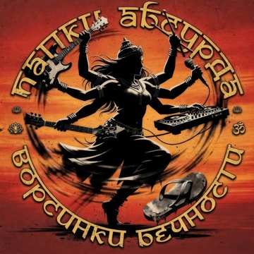 metal, Indian folk metal fused with aggressive industrial rock and breakcore elements; high-velocity dhol beats layered with chaotic electronic drums, Distorted guitars through Mesa Boogie Rectifier with mid-forward bite; frantic sitar shredding, Male baritone vocals shifting from aggressive shouting to melodic Hindi chanting, Tense and overwhelming wall of sound, aggressive, frantic, Russian lyrics, Hindi lyrics, ‑Arena Rock, ‑Stadium Rock, ‑Live Concert, ‑Soft, ‑Acoustic, ‑Ambient, ‑Jazz, ‑Pop, ‑Slow, ‑Calm