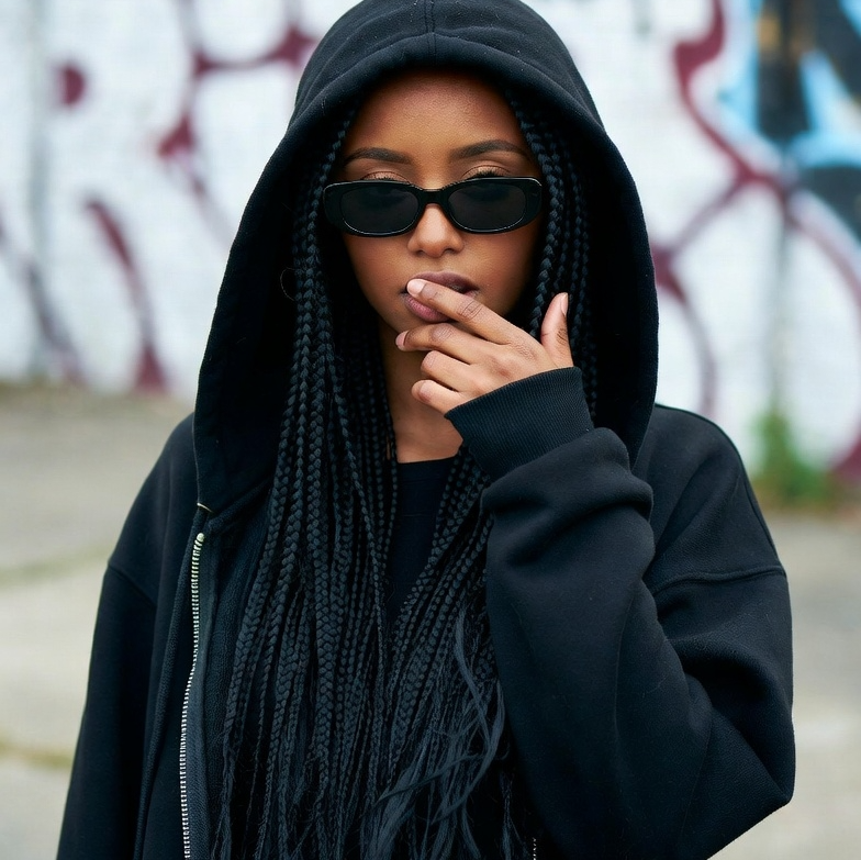 Mid-tempo experimental indietronica track (100BPM) blending quirky cyberpunk dance, proto-electro, minimal funk, and weird wave textures, Cold female French vocals with spoken and sung parts, post-punk attitude, and vocoder layers, Rhythms are synthetic, angular, and sometimes afrobeat-inspired, Includes glitchy breakdowns, stark drops, and ambient moments, Style references: Chicks on Speed, Gina X, Peaches, early La Femme, and Grace Jones, Moody but danceable, Lyrical themes of cool detachment, hidden heartbreak, irony