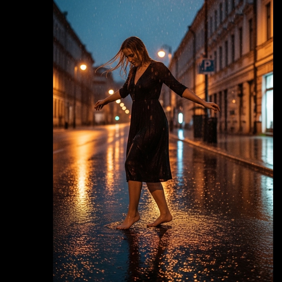 Cinematic indie pop song with an empowering, melancholic yet liberating vibe, Slow build with minimal ambient synths, deep pads, soft echoing piano, subtle guitar layers and spacious reverb, Female vocals in an intimate, airy tone, rising to a strong chorus with layered harmonies, Lyrics about breaking free, shaking off the past, dancing alone, with symbolic imagery of dust, chains, wind and light, Bridge shifts to a dreamy, starry atmosphere, then final chorus blooms with raw, triumphant energy, Keep arrangement open, emotional, with gentle but clear beats