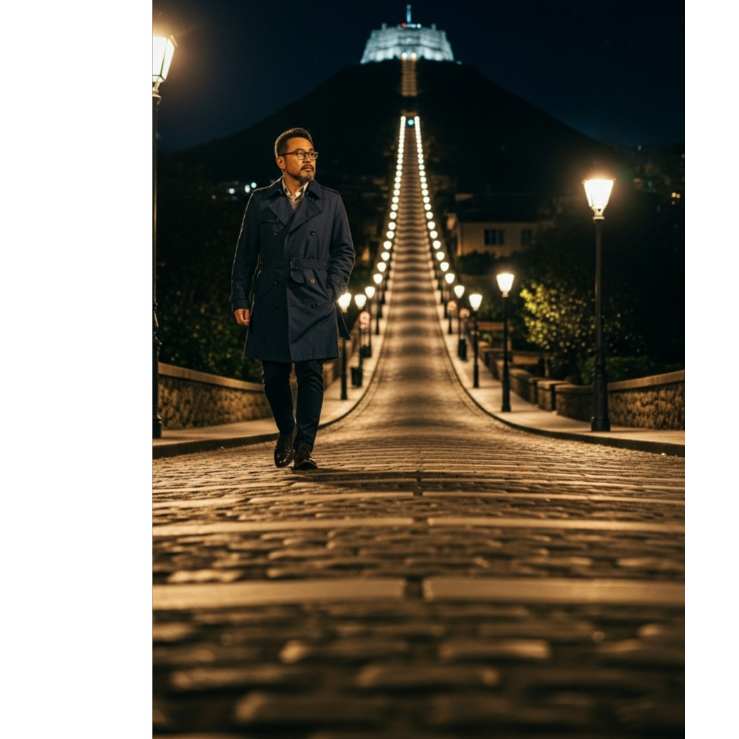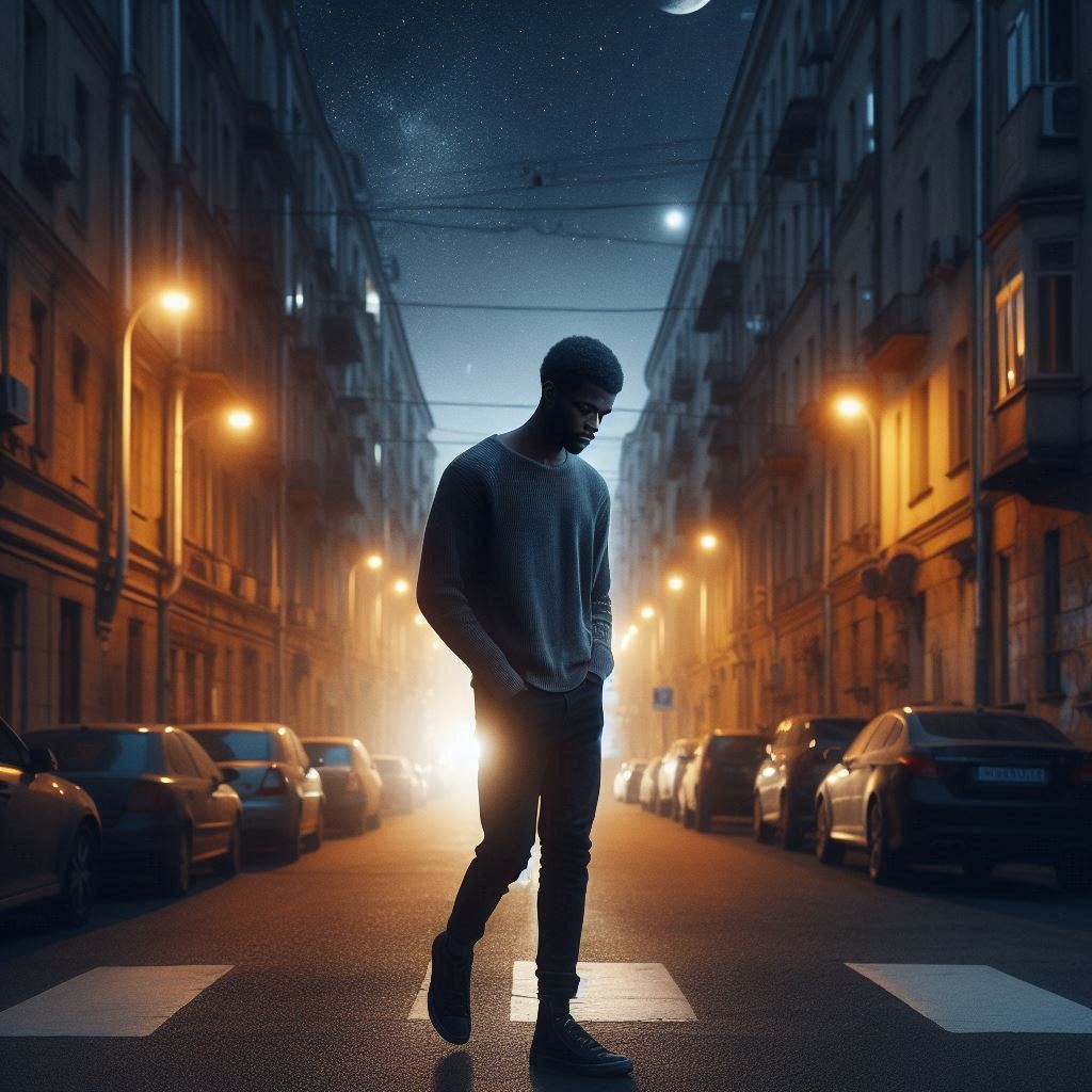 A slow, melancholic track opens with gentle acoustic guitar and soft piano lines, underpinned by subtle ambient pads, Male vocals are warm and intimate, floating over a steady, unhurried tempo, Light percussion—soft brushes and distant reverb snares—merge with faint city sounds like traffic hush and wind, Smooth dynamics create a peaceful, nocturnal haze, emphasizing a continuous, introspective flow without any dramatic chorus—just a seamless, reflective groove from start to finish