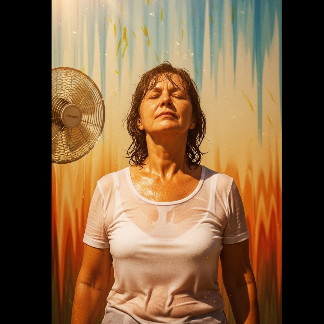 Create a groovy, sticky electro-funk / tropical dark pop song based on the Slovak lyrics "Spotené tričko" (Sweaty Shirt), The song should feel like summer heat turned into music: humid, claustrophobic, and absurdly funny, Imagine a funky synth groove melting in the sun, with rhythmic sweating and fan noises in the background, The vocals are semi-spoken, semi-sung, like a delirious monologue in 38°C heat, Add layered synths, punchy basslines, handclaps, dripping effects, and ironic backing vocals, Think Daft Punk meets Glass Animals in a sweaty Eastern European apartment with a broken fan, Chorus should feel catchy and stuck like a wet T-shirt, Keep the rhythm steady and sticky, Optional: occasional horror elements like eerie pads or reversed breaths, Vocal delivery should sound exhausted but committed – too hot to care, too funky to stop