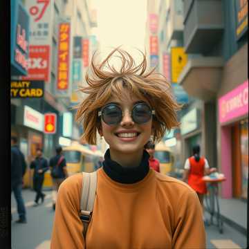 Upbeat indie pop song with warm acoustic guitar and soft piano chords, Light percussions with a playful snare and hand claps, The mood is carefree but a bit chaotic — like a young woman walking through a busy city with messy hair and a stubborn smile, Soft female vocals, intimate and conversational, with subtle background harmonies, The instrumental should feel cozy yet energetic, with light bass and gentle drum brushes that give it a strolling rhythm